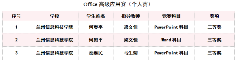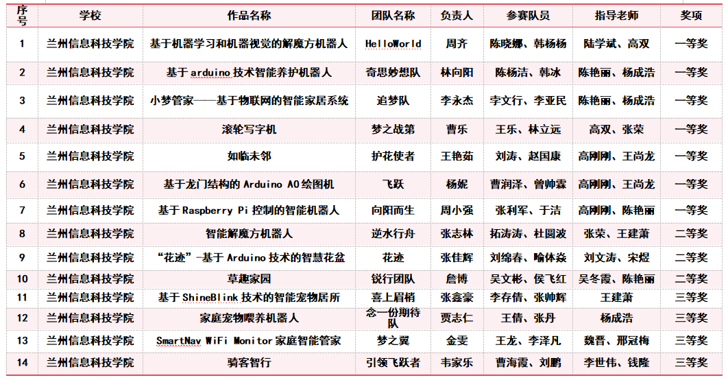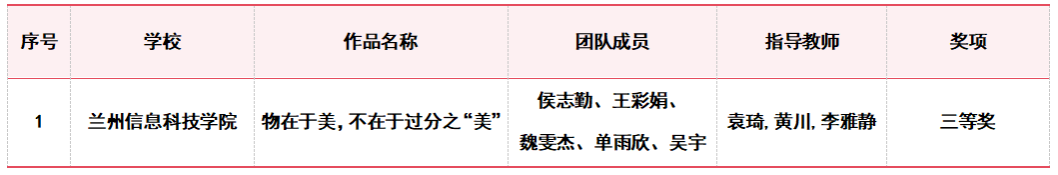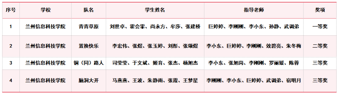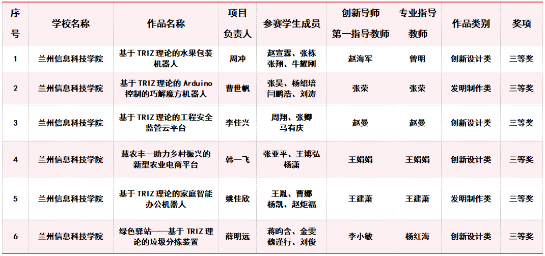 甘肃省大学生创新方法大赛获奖名单