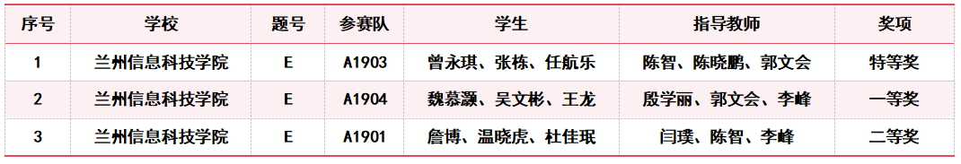 2023年“高教社杯”全国大学生数学建模竞赛(甘肃赛区)获奖名单