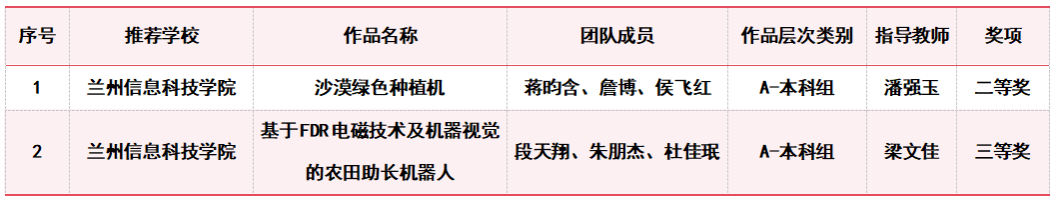 2023年全国大学生智能农业装备创新大赛(甘肃赛区)省级决赛获奖项目名单