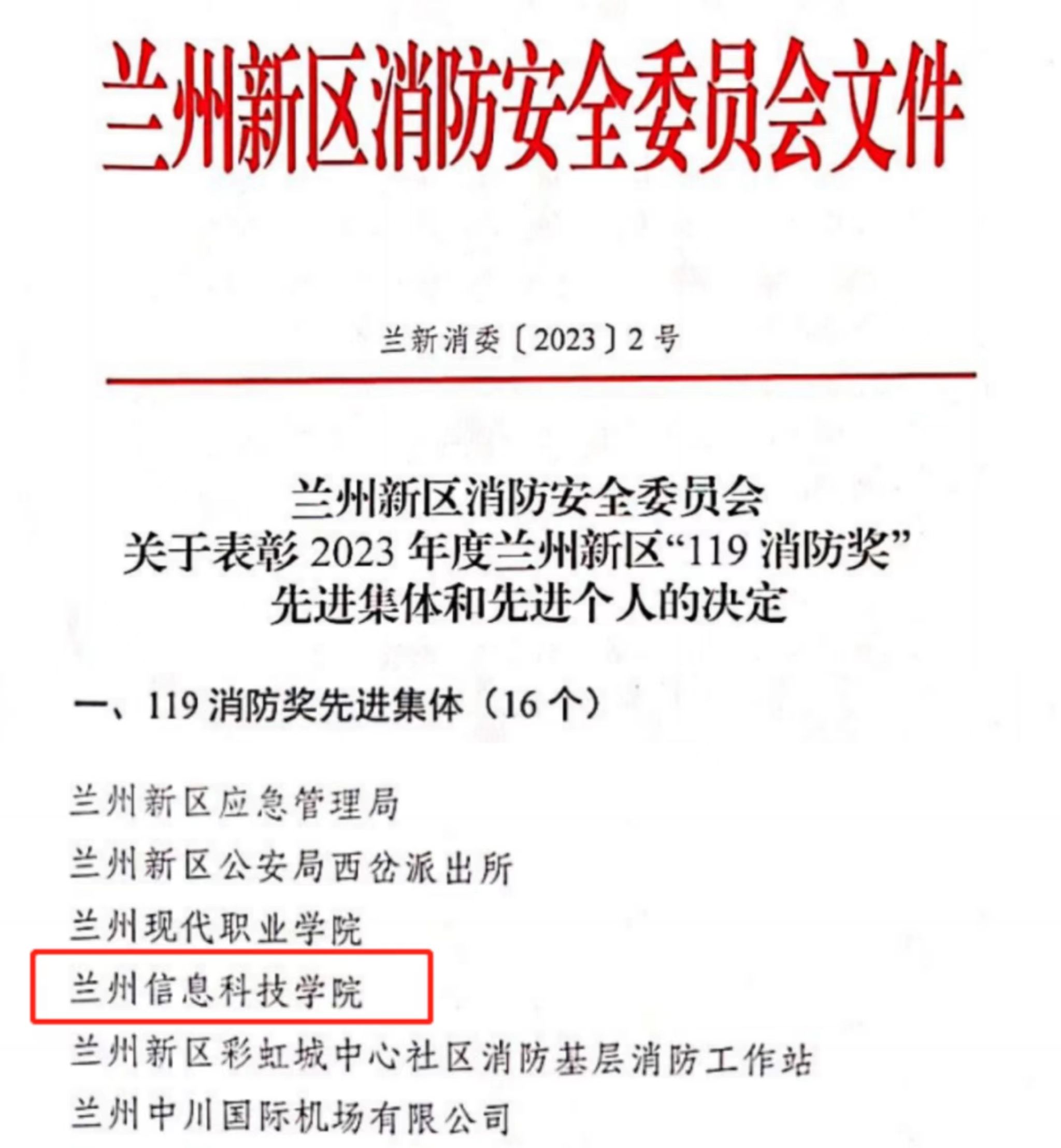 近日,BEAT365英国官网经兰州新区消防安全委员会评选,荣获2023年度“兰州新区119消防奖先进集体”称号。