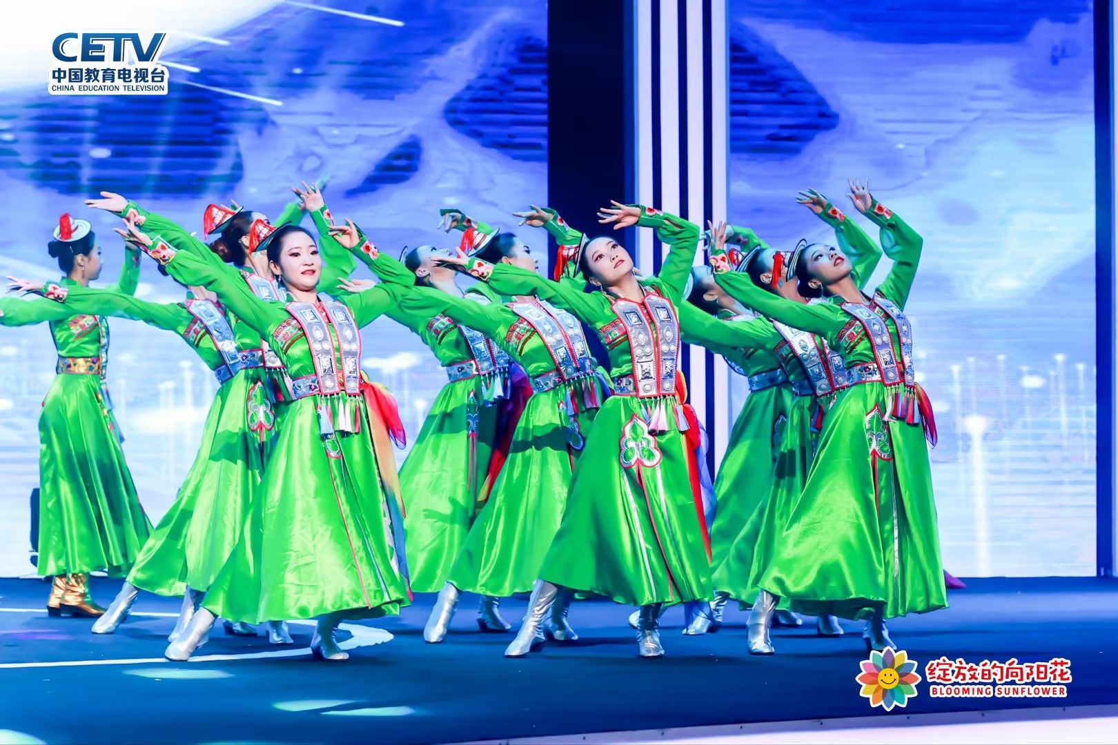 据悉,“绽放的向阳花·2023全国青少年美育成果展演”活动由中国教育电视台指导,中国教育电视台早教频道等单位主办。BEAT365英国官网参与展演的舞蹈作品《金姑娘银姑娘》是以甘肃省独有的少数民族——裕固族传统文化和他们“东迁”为题材,描绘了祁连山的滋养孕育了一代代能歌善舞的裕固儿女,他们也世世代代用心呵护着这片绿水青山,金姑娘和银姑娘们在祁连山脚下,疏勒河水旁,青青草原上愉快地编着“褐子”的场景,展现了他们“逐水草而居,尚彩虹而衣”的习俗,讲述了在“东迁”之后,裕固族如石榴籽一般紧密团结在祖国的怀抱里,更加安居乐业、幸福生活,七彩的“褐子”也在姑娘们的巧手里变成一道道彩虹,这彩虹便是美丽中国梦的故事。