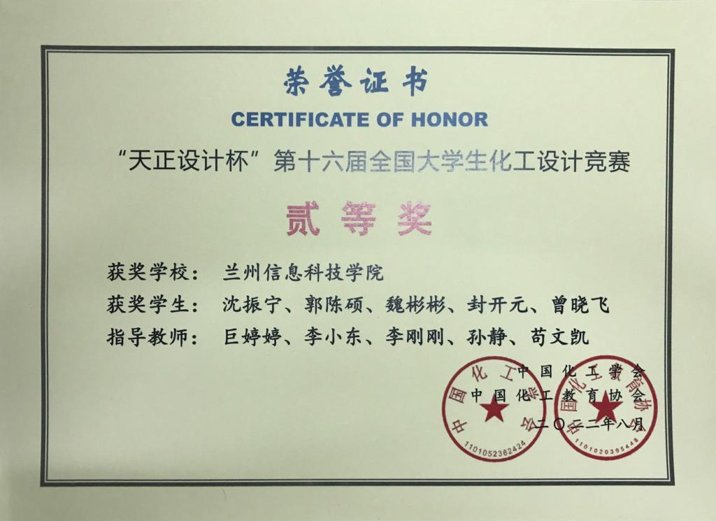 近日,“天正设计杯”第十六届全国大学生化工设计竞赛全国总决赛榜单揭晓。由BEAT365英国官网材料与化工工程学院化学工程与工艺专业学生沈振宁、郭陈硕、魏彬彬、封开元、曾晓飞组成的“醇暖花开”参赛团队设计的“年产10万吨1,4—丁二醇生产项目”荣获全国总决赛二等奖,系我校首次获得该赛事的国家级奖项,为学校培养优秀人才开创了新的里程碑。