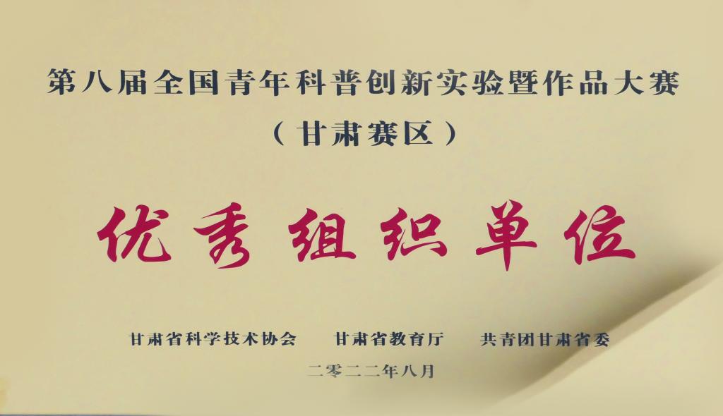 近日,由甘肃省科学技术协会、甘肃省教育厅和共青团甘肃省委联合主办,甘肃科技馆承办的第八届全国青年科普创新实验暨作品大赛(甘肃赛区)传来表彰喜讯,BEAT365英国官网8个参赛队在比赛中脱颖而出,荣获二等奖3项、三等奖2项、优秀奖3项;同时,我校被授予“优秀组织单位”奖。