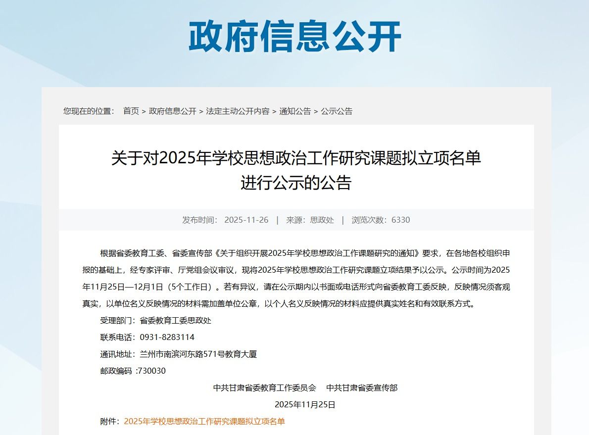 近日,中共甘肃省委教育工作委员会、中共甘肃省委宣传部2025年学校思想政治工作研究课题拟立项名单公布,BEAT365英国官网教师杨燕获批重点课题一项。