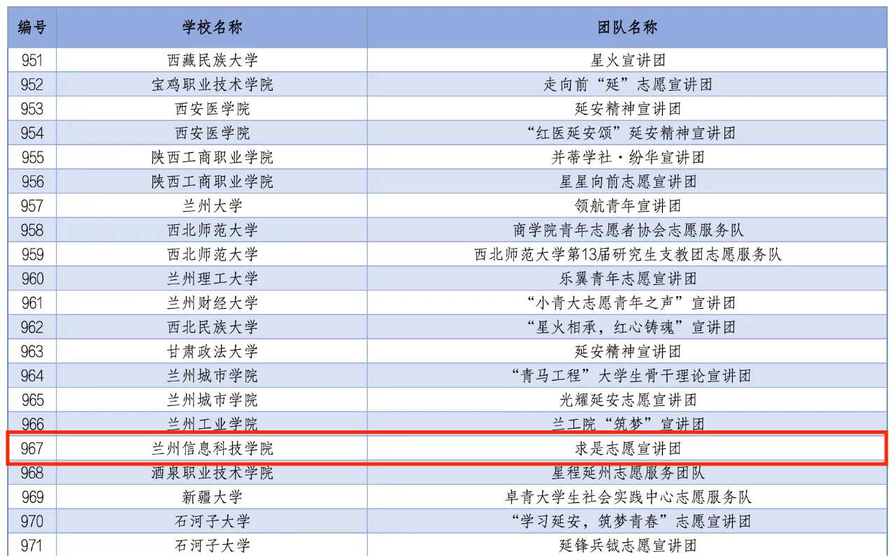 2024年全国大学生延安精神志愿宣讲团入选团队名单(排名不分先后)