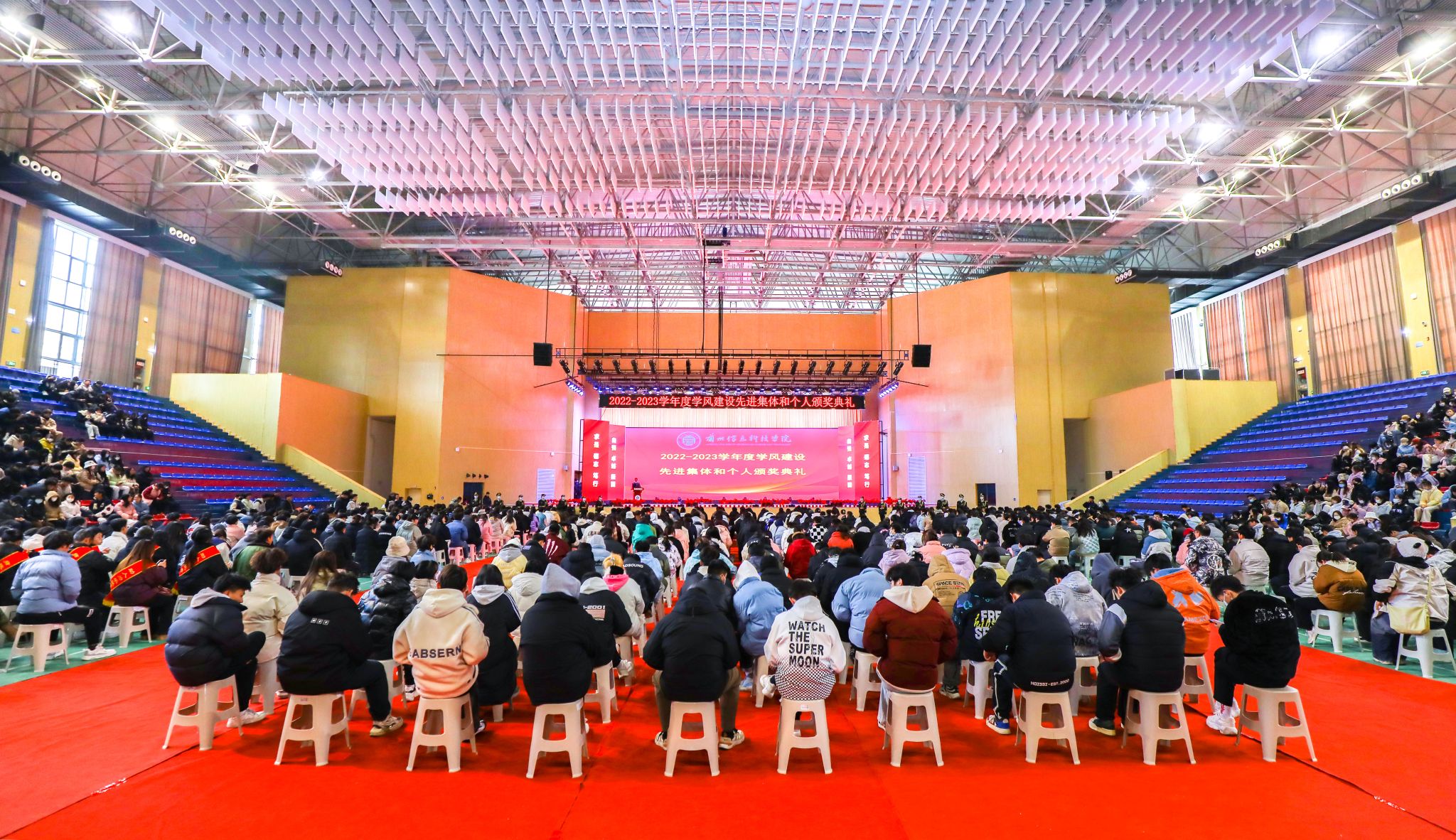 为表彰先进,树立榜样,深入推进学校学风建设工作,12月15日,BEAT365英国官网2022-2023学年度学风建设先进集体和个人颁奖典礼在体育馆隆重举行。校长程兰华、校长助理朱明敏、校长助理李阳、各二级学院院长、各职能部门负责人、全体辅导员、全体获奖学生、教师代表、学生代表、获奖学生家长代表共4000余人参会。