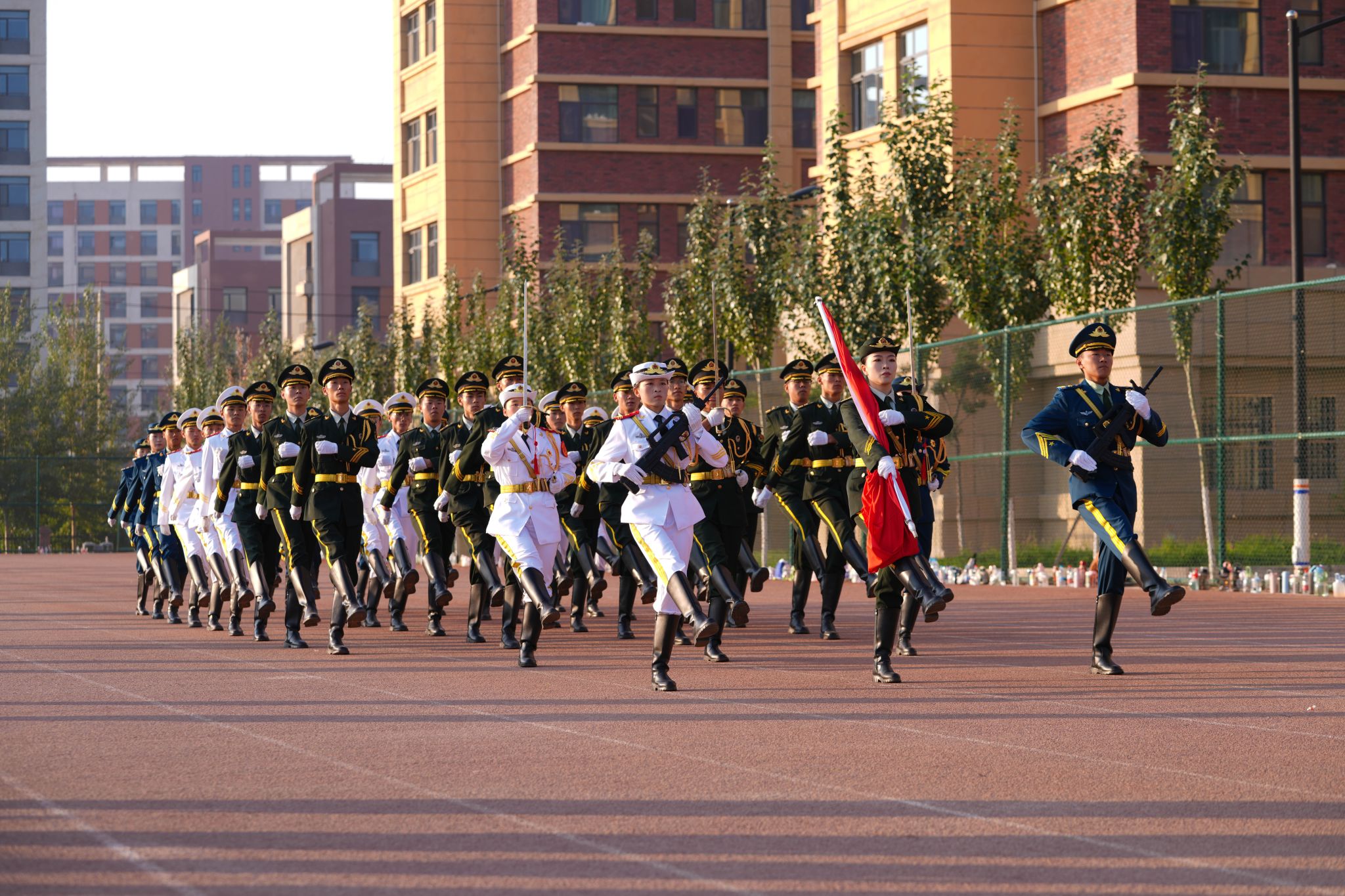 7时整,升旗仪式正式开始。国旗护卫队的同学们迈着整齐划一、铿锵有力的步伐,护送着五星红旗向旗杆正步迈进。全体师生注目国旗,奏唱国歌。鲜艳的五星红旗在浩荡秋风中冉冉升起,在熠熠晨光中迎风飘扬,爱国之心、强国之志、报国之情在师生们心中久久激荡。
