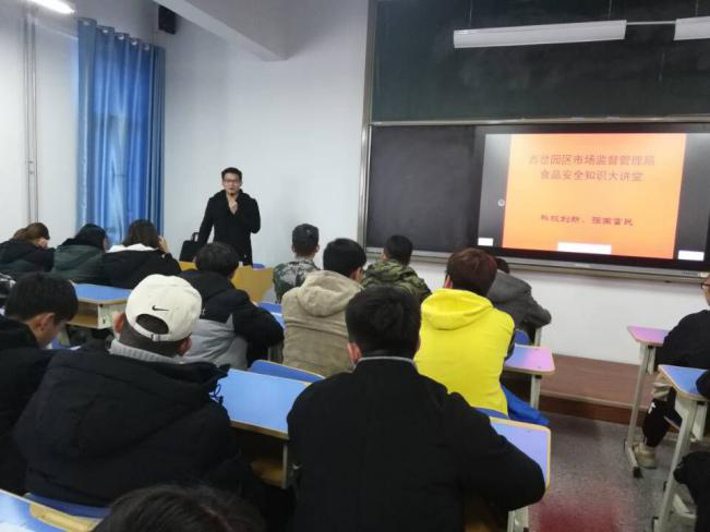 12月3日下午14:00兰州新区西岔园区市场监督管理局局长王治儒同志在一号教学楼312教室为同学们讲解食品安全知识。王局长讲解了影响营养物质消化的因素、合理的饮食、不健康的生活方式和行为以及有益于身体健康的营养物质。告诫我们在饮食方面要有良好的习惯,膳食合理搭配,不能暴饮暴食。近年来,食品安全是核心问题,校园外卖明显增多,给校园秩序、环境卫生、学生的食品安全带来了很大的影响。“民以食为天,食以安为先”,通过本次食品安全讲座,希望大家能够进一步增强食品安全意识,更加重视食品安全问题,并且要养成良好的饮食习惯和健康的生活习惯。