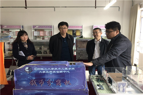 2018年4月12日上午,兰州市七里河区科技局局长路彦龙、副局长王小萍在学院副院长谢黎明、学生处处长朱明敏陪同下,对我院大学生科技创新中心进行了参观考察。