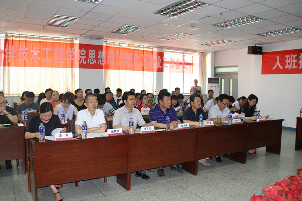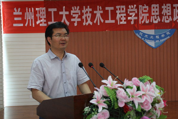 7月13日上午,学院在砺志楼C区六楼会议室召开思想政治理论课建设工作会议,就贯彻落实习近平总书记重要讲话精神和中央《关于加强和改进新形势下高校思想政治工作的意见》精神,切实加强和改进我院思想政治理论课建设,进行专题研讨和工作部署。兰州理工大学马克思主义学院党总支书记张军成教授、兰州理工大学马克思主义学院院长饶旭鹏教授、兰州理工大学马克思主义学院权丽华教授、兰州理工大学技术工程学院全体院领导、全体中层干部、全体教工党员、思政教研室全体教师、全体辅导员参加了会议。会议由学院党委委员、党群工作部部长张少峰主持。