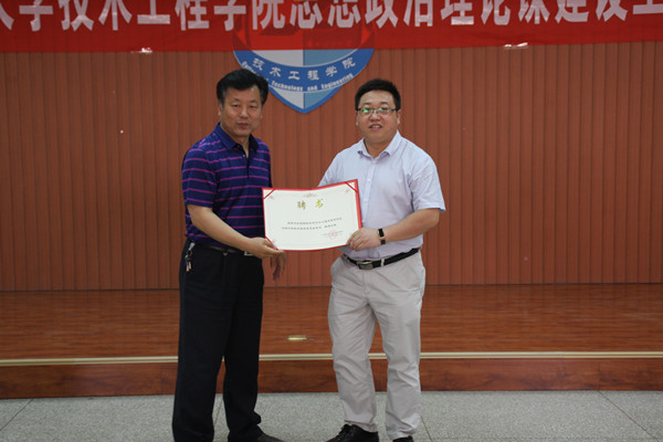 学院院长赵万勇教授为学院思想政治理论课教学指导委员会委员饶旭鹏教授颁发聘书