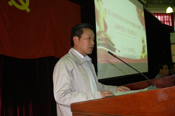 会上169名新党员在领誓人的带领下面向党旗庄严宣誓。副院长谢黎明宣读了《学院党委关于在全体党员中开展党员示范岗和党员宿舍创建活动方案》,随后为教师党员代表和学生党员代表授予党员示范岗和党员宿舍标牌。授予标牌的教师党员代表和学生党员代表分别结合自身工作、学习情况进行了发言。