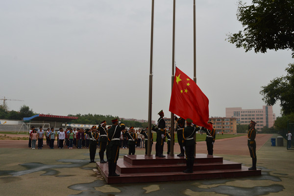 9月3日早上9:00,学院在田径场举行了庄严隆重的升旗仪式。全院各级团学组织代表共200余人参加了仪式。随着《义勇军进行曲》的响起,五星红旗冉冉升起,全体行注目礼,庄严肃穆,表达着对祖国的无限热爱和崇高敬意。