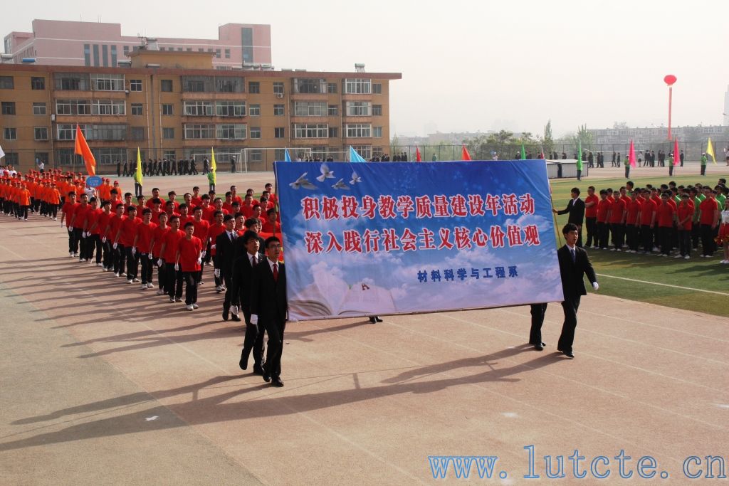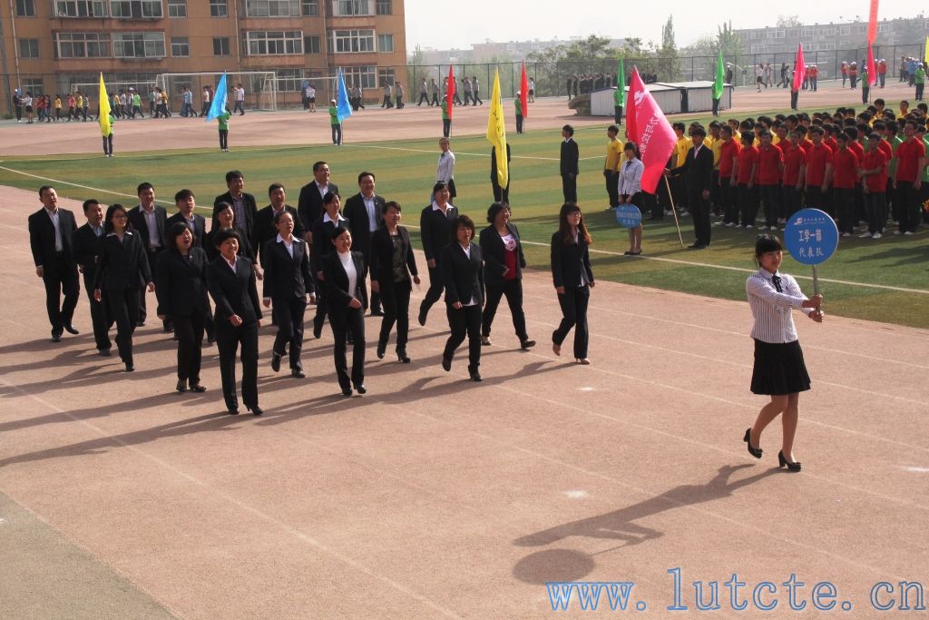 伴随着嘹亮的运动员进行曲,国旗、院旗、会旗、会徽相继入场,彩旗方阵、表演方阵、裁判员方阵以及各系学生代表队方阵和教师方阵迈着整齐的步伐、喊着响亮的口号、精神饱满地从主席台前走过,接受领导们的检阅。