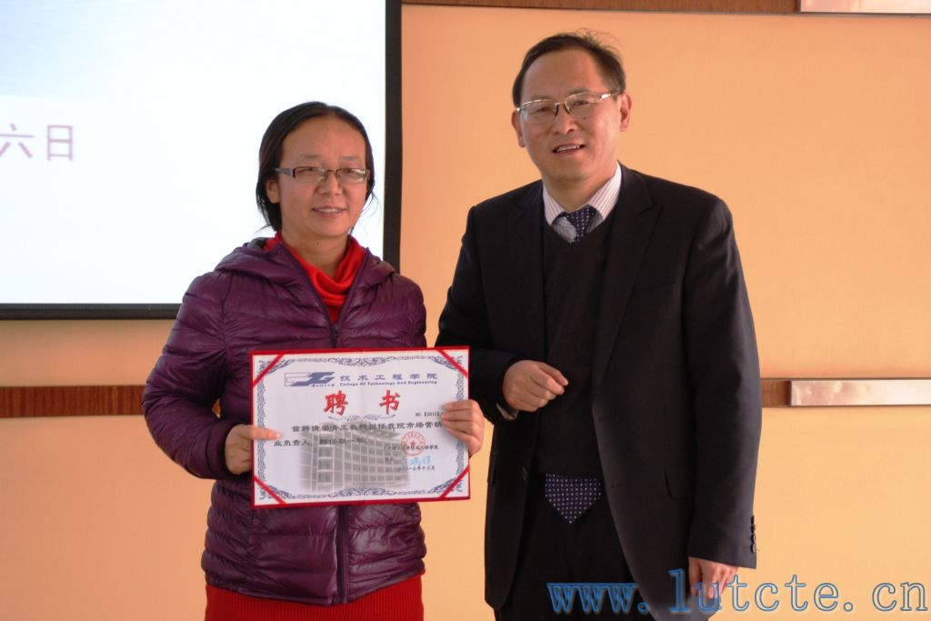 王瑞祥院长为市场营销专业负责人、兰州理工大学梁青玉教授颁发聘书