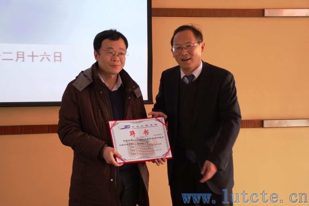 王瑞祥院长为能源与动力工程专业负责人、兰州理工大学张人会教授颁发聘书