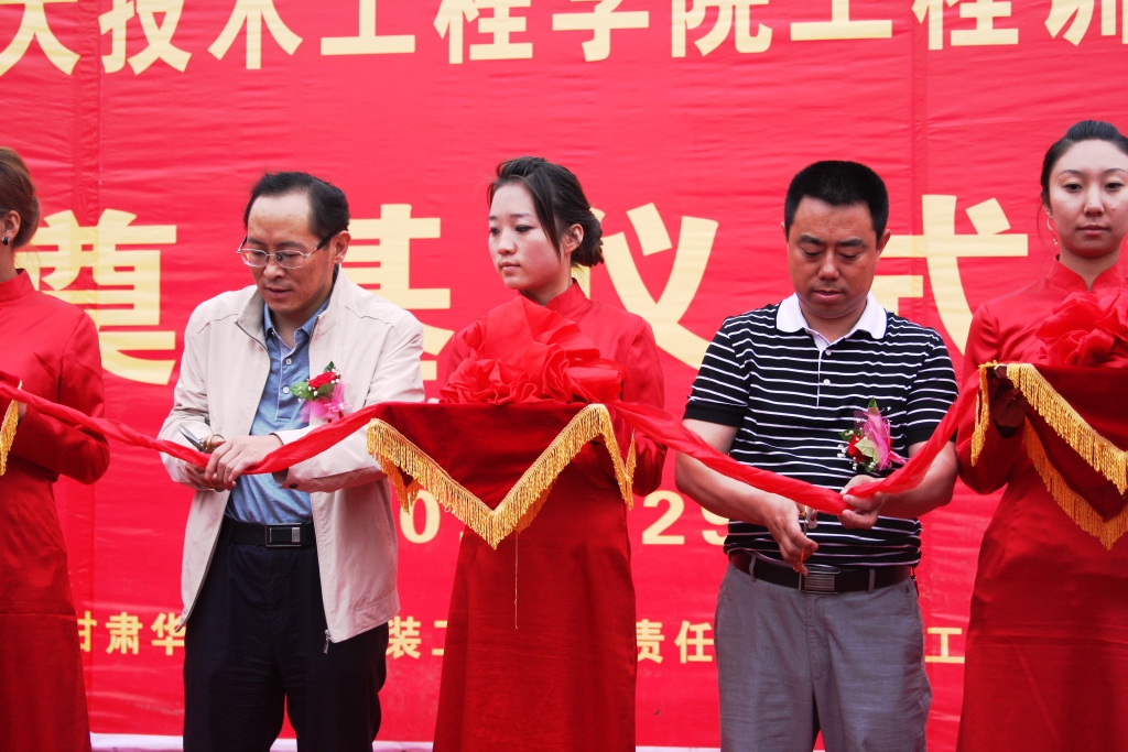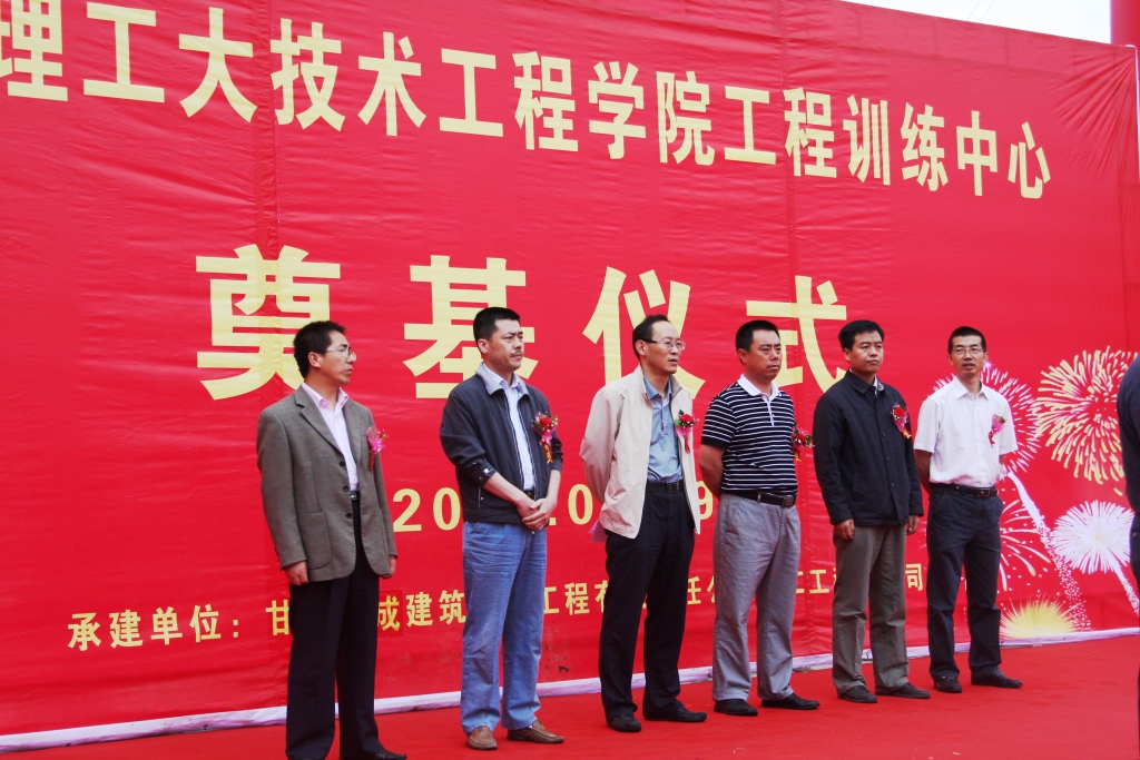在奠基仪式上,学院院长王瑞祥发表了重要讲话。他指出,工程训练中心的开工,是我院基础设施建设工作中的一件大事,也是改善学院办学条件的一件大事,衷心希望工程施工方及监理方密切合作,精心施工,加强监管,严格按照工程建设规范程序操作好各个环节,加快工程进度,加大工程监管力度,保证工程质量,确保工程训练中心工程高速、高质、安全完成。学院领导与施工单位和监理单位负责人随后共同为工程训练中心工程剪彩奠基。