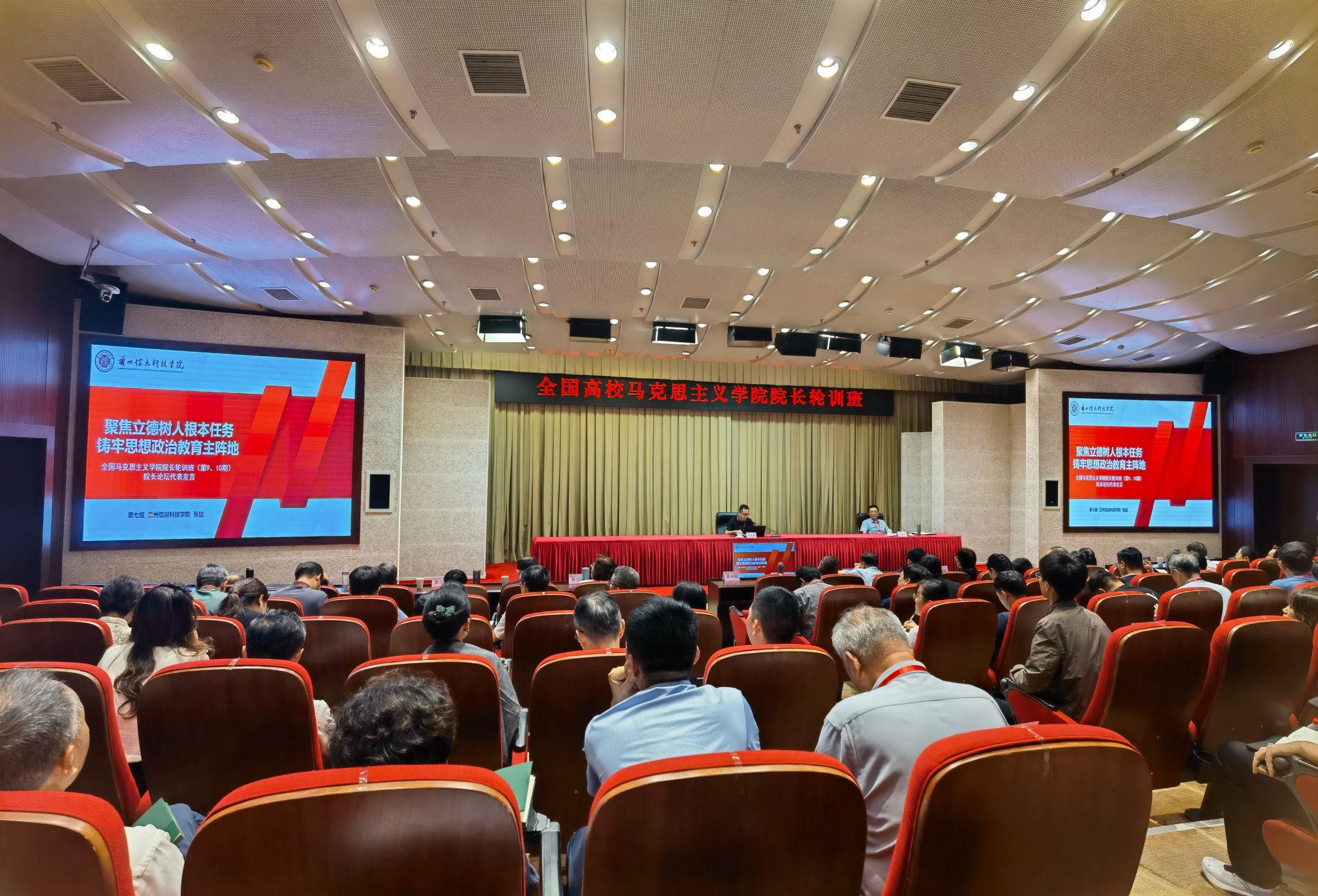 本次轮训班“院长论坛”期间,张喆院长被推荐发言。他以“坚持立德树人根本任务,铸牢思想政治教育主阵地”为主题,通过“学校高质量办学取得的良好社会声誉”“马克思主义学院建设取得的优异成果”“培训收获感悟”和“提升高校思政课教学质量工作思路”等四个方面向参训的全国各高校马克思主义学院院长做了汇报交流,特别是介绍了学校高质量办学赢得社会认可,2025年高校招生遇冷,但学校招生“出圈”,凭借扎实的办学实力、卓越的人才培养成效、高质量就业的成果,成为学生和家长信任的选择。同时介绍了学校对马克思主义学院建设的高度重视和大力投入,马克思主义学院和思政课建设取得了显著成果,包括全国高校思政课教学展示活动二等奖、第五届全国高校教师教学创新大赛三等奖、获批省级教学团队和获批省级精品思政课等。上述发言赢得良好反响,尤其在论坛后的交流过程中,部分全国重点马克思主义学院院长给予了学校高度的认可和评价。