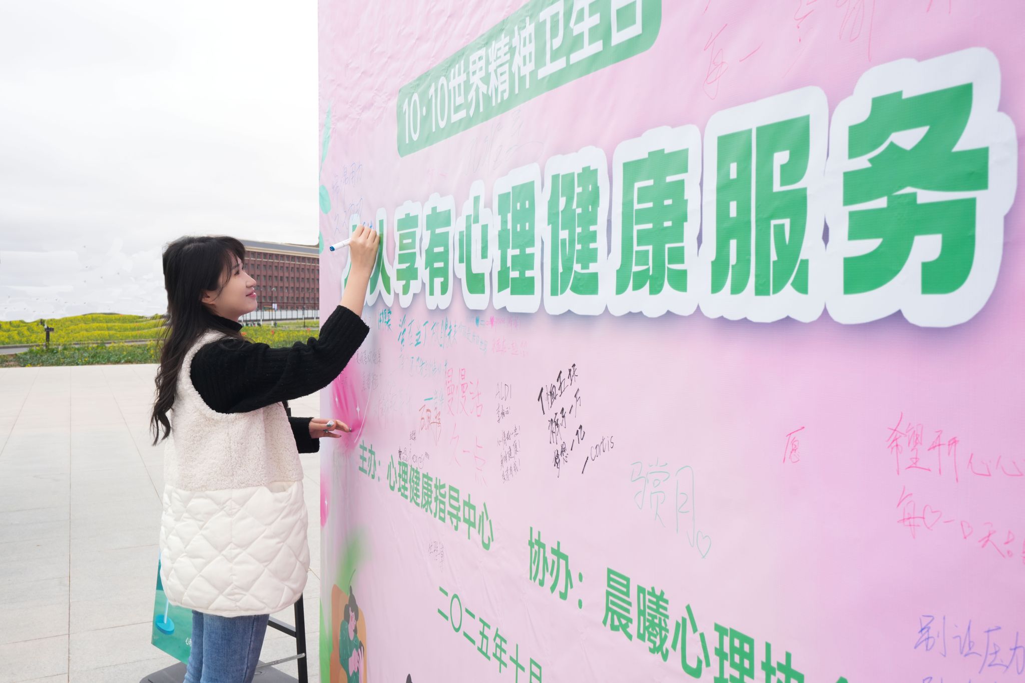 那些写下对未来期许的信件,字里行间藏着同学们对成长的憧憬;签名墙上留下的一个个名字,不再只是简单的符号,更像是同学们与自己的“心灵约定”,是愿意主动关注心理状态、拥抱积极生活的郑重表态;幸福打卡的二次体验,让同学们在觉察生活中的微小美好时,多了一份主动与深刻…通过这些丰富多彩的主题活动,广大师生慢慢感受到:心理健康不是遥远的话题,它藏在每一次真诚的表达里,藏在每一个关注自我的瞬间里。也正因如此,大家对精神疾病的认知少了一份陌生,对心理健康问题的应对多了一份底气,学生们的自我关怀意识悄悄扎根生长,全校关注精神健康氛围愈发浓厚,收获了师生的广泛赞誉。