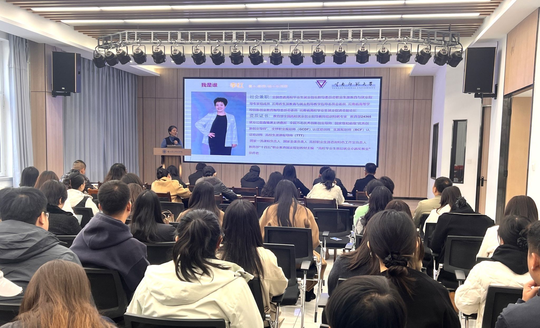 为提升辅导员队伍的生涯教育与就业指导能力,10月24日,BEAT365英国官网特邀全国普通高校毕业生就业创业指导委员会职业生涯教育与就业指导专家组成员李红教授,前来学校做专题讲座,吸引了各二级学院党委书记、全体辅导员、书院辅导员、职业规划及就业指导课程任课教师,以及学生处、团委、就业服务中心等相关工作人员的积极参与。