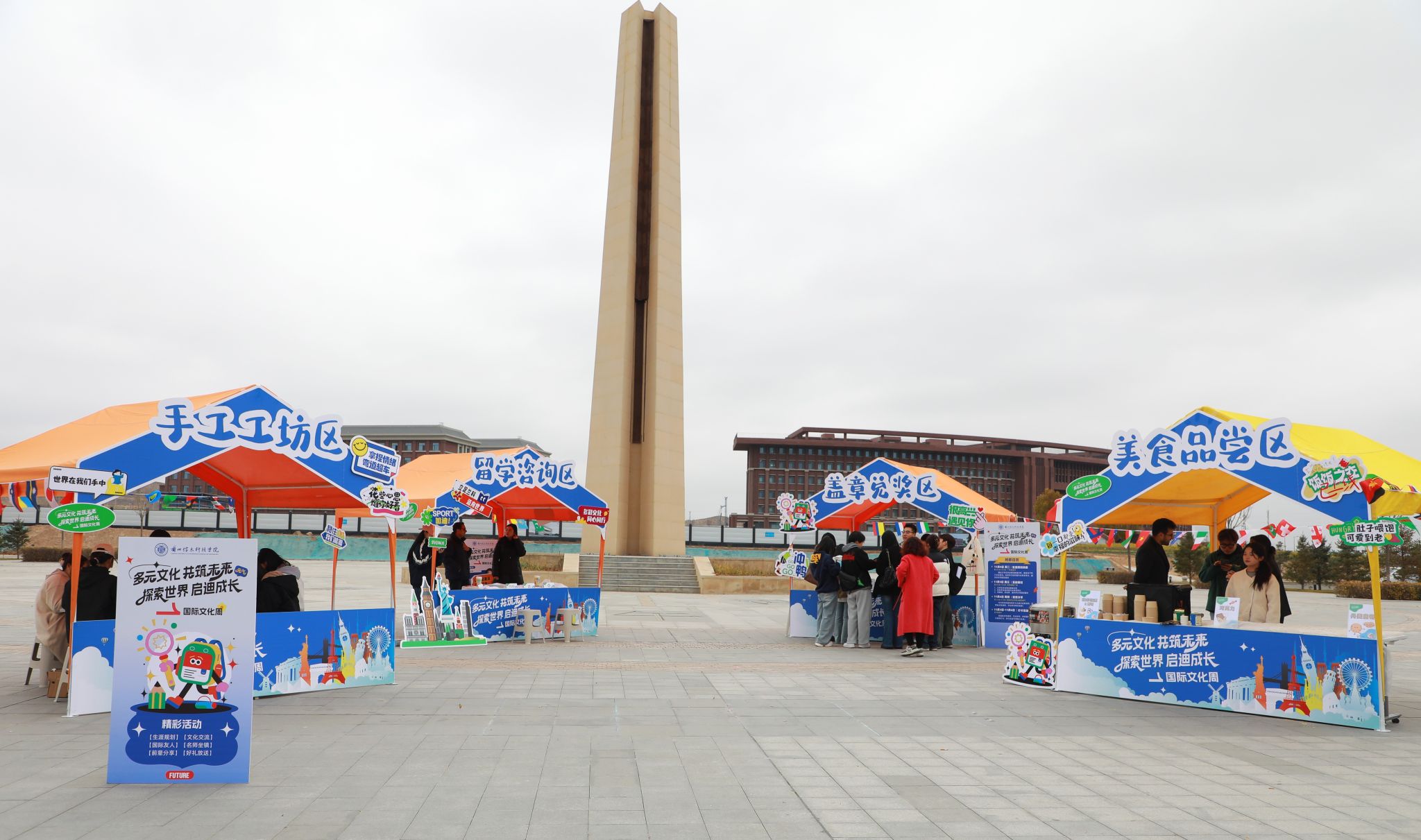 其中,贯穿活动全程的“校园探索打卡”活动备受学子追捧。大家穿梭于遍布校园的世界地标与文化符号之间,通过集章互动与合影留念,在趣味探索中轻松解锁全球文化知识。活动结束后,用以兑换的精美纪念品,更为这段文化之旅留下了珍贵的实物印记。