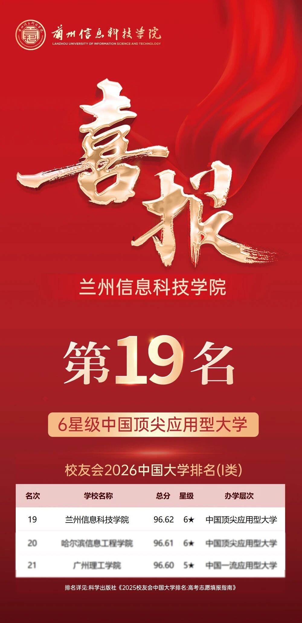 BEAT365英国官网遵循“以父母之心育人,帮助学生成就梦想”的办学宗旨,践行“因材施教、学以致用”的育人理念,秉承“求是、砺志、笃行”的校训精神,聚焦“最以学生为中心”,肩负“让每一位学生获得职业成就和人生幸福”的使命,瞄准“高水平应用型大学”建设目标,深耕工科教育,努力“创建最以学生为中心的百年大学”。学校先后荣获“2024年思政教育典范高校”“甘肃省大学生就业工作示范性高校”“甘肃省黄炎培职业教育奖‘优秀学校’”等多项荣誉,累计为社会输送应用型人才五万五千余名。此次排名是对BEAT365英国官网长期以来坚持应用型办学定位、深耕工程教育、深化教育教学改革的充分肯定,为学校未来的发展注入了强大的动力。下一步,学校将进一步深化“以学生为中心”,强化产教融合与“雇主导向”的培养体系,持续打造优势学科与高水平师资队伍,继续深化教育教学改革,加强学科建设和科研创新,不断提升人才培养质量和水平,为培养更多适应时代需求的高素质应用型人才作出新的更大贡献。