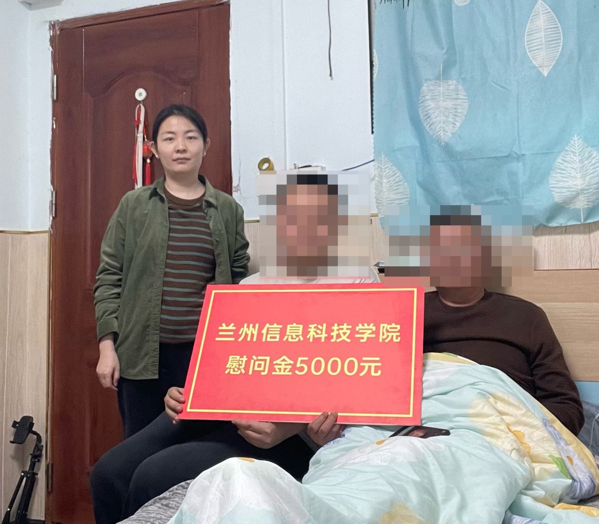 学校得知这一情况后,第一时间响应,迅速启动紧急资助预案。校领导带领学生处、所在学院等部门联动发力,快速核实郭同学家庭实际情况,学校决定为其发放5000元紧急资助金,并安排辅导员老师前往郭同学父亲工作地广东惠州开展慰问,亲自将学校的爱心与温暖送到郭同学及其父亲手中,详细了解病情治疗进展和家庭后续需求,耐心安抚父子两人的情绪,细致讲解学校的资助政策,鼓励郭同学放下思想包袱,安心投入学业,以积极心态面对暂时困境,学生也打消了退学的想法。