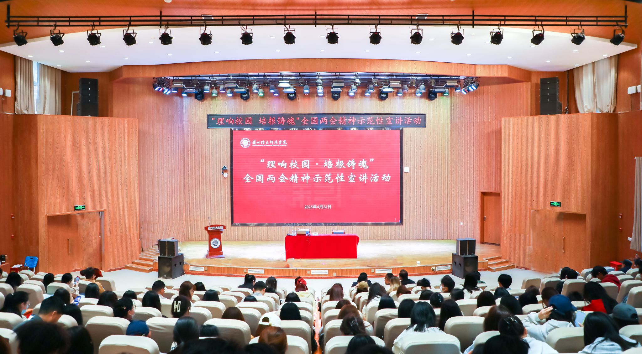 党委各部门负责人、各二级党组织书记、思政课教师、辅导员、“青马工程”全体学员及学生代表共300余人聆听报告。