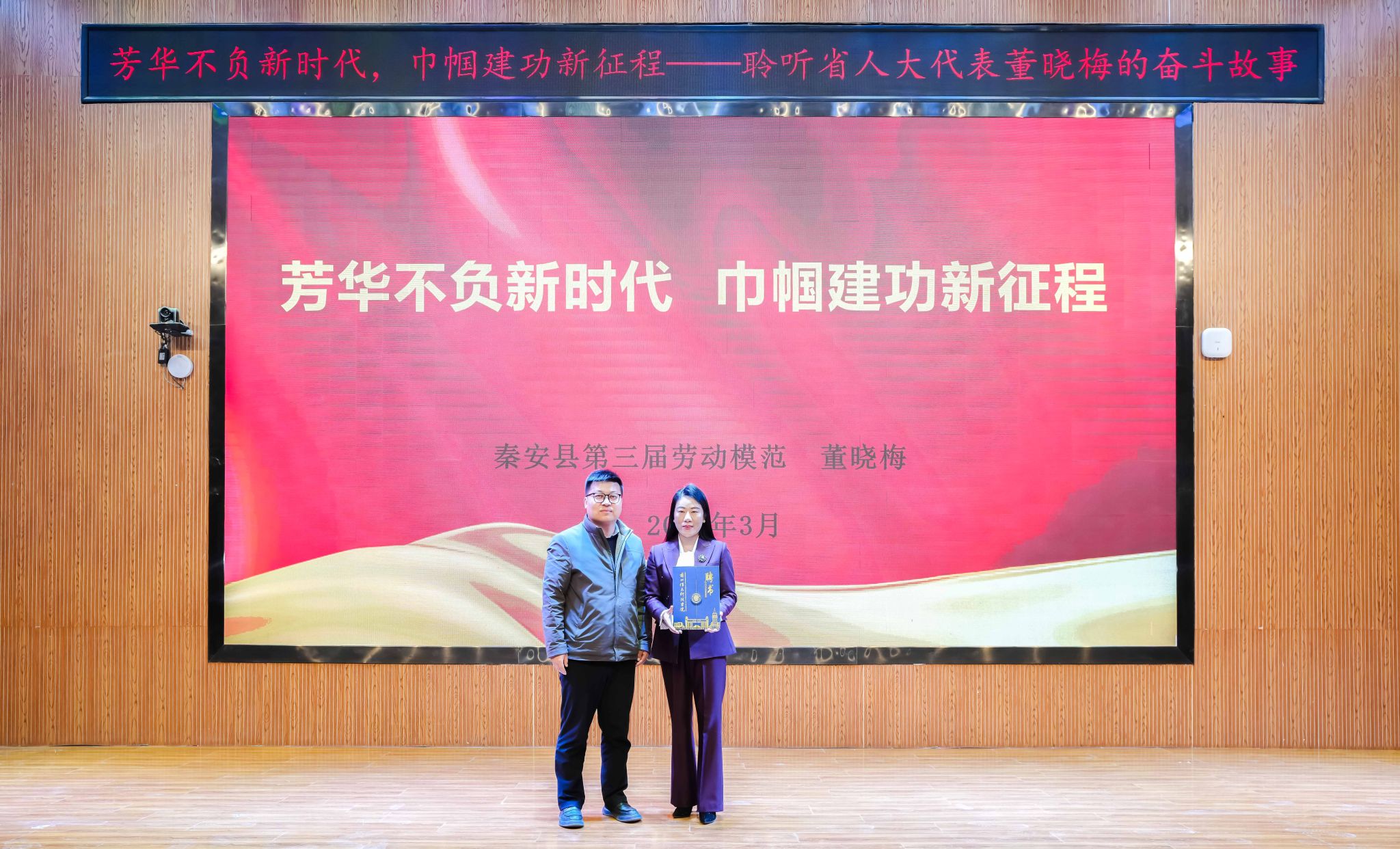 讲座开始前,董晓梅代表以质朴的语言进行了自我介绍。作为一名扎根基层的劳动者,她始终坚守“爱岗敬业、争创一流、艰苦奋斗、甘于奉献、勇于创新”的劳模精神,在平凡的岗位上创造了不平凡的业绩。她曾荣获天水市最美劳动者、最美秦安人、秦安县劳动模范等荣誉称号,并作为80后创业达人,参加了央视3套《幸福账单》节目,宣传家乡的苹果,让甘肃的苹果面向全国走向世界,成为致富带头人。