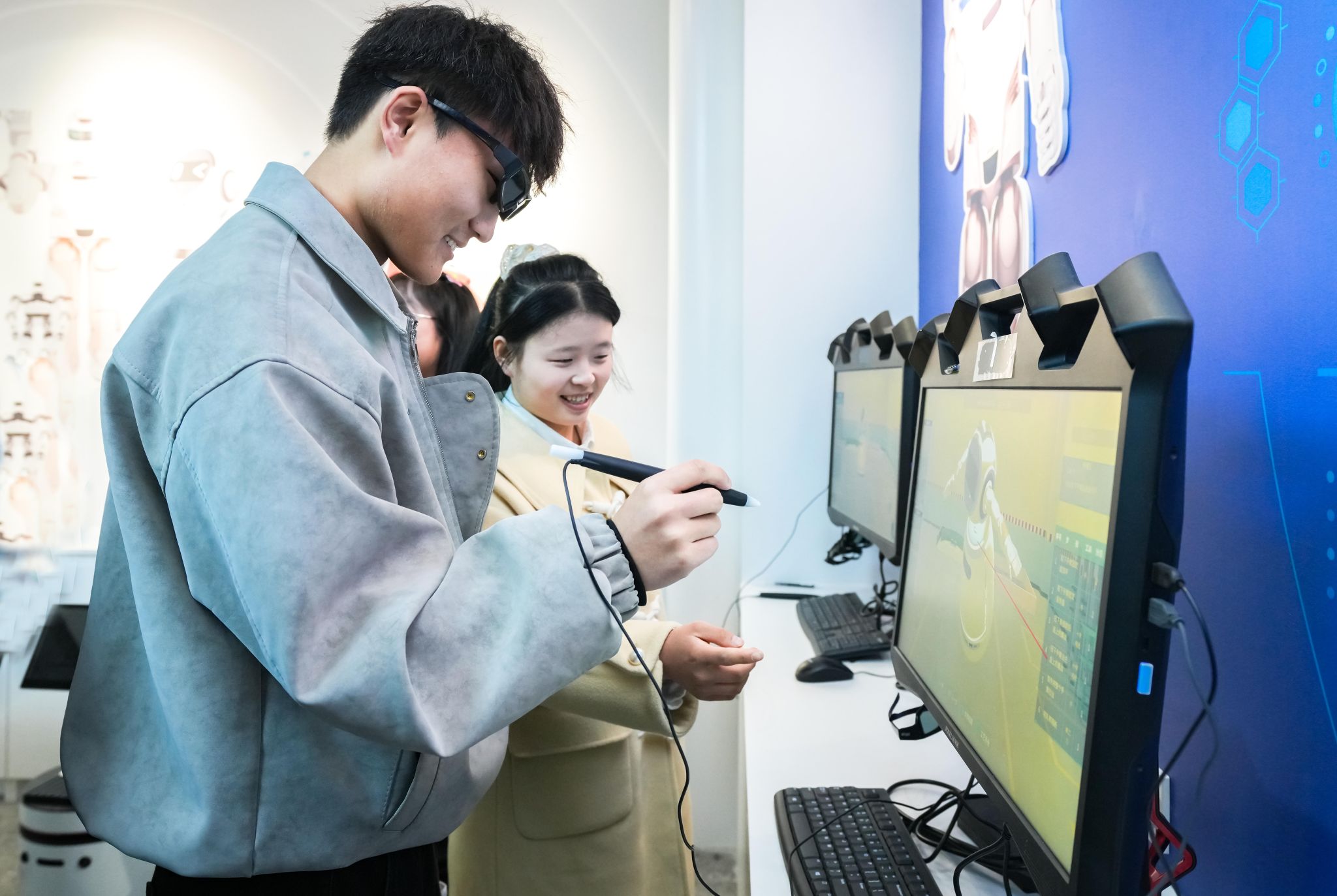 同学们对先进的实验设备和丰富的实训资源表现出浓厚兴趣,在智能制造产业学院,同学们积极体验VR等互动设备,通过虚拟仿真技术深度体验学校虚实结合的创新教学模式显,对BEAT365英国官网特色的应用型本科培养模式表示称赞。