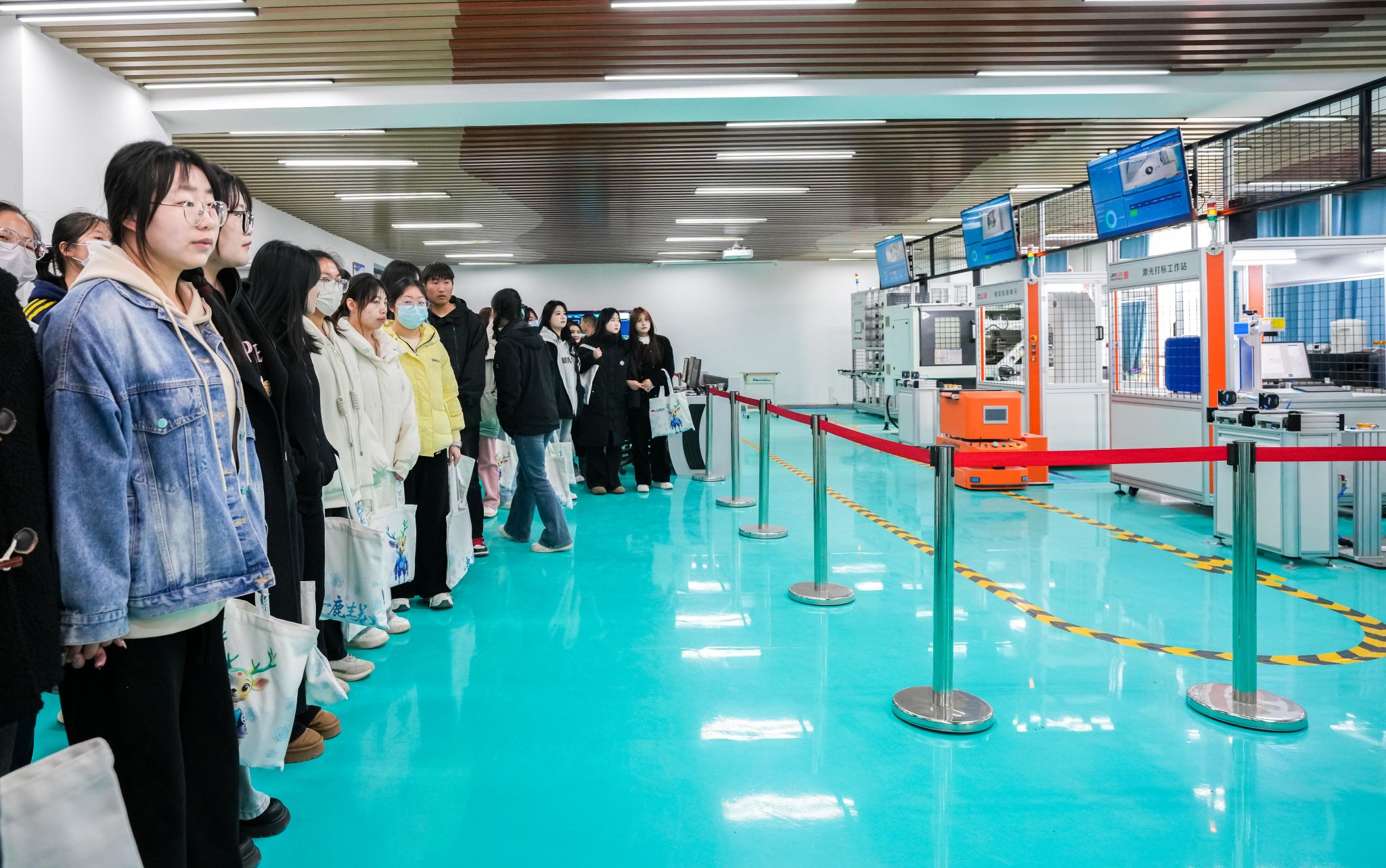 根据自己所学专业大类,同学们分组体验了工程训练中心、电气控制与自动化实验中心、机械实验教学示范中心、电工电子实验教学示范中心等省级实验教学示范中心;物联网工程实验室等省级重点实验室;人工智能产业学院、智能制造产业学院、优必选机器人产业学院、智能测绘产业学院等校企共建现代产业学院。同学们一边聆听观看主讲老师们详细地介绍与实操,不时与老师交流咨询。