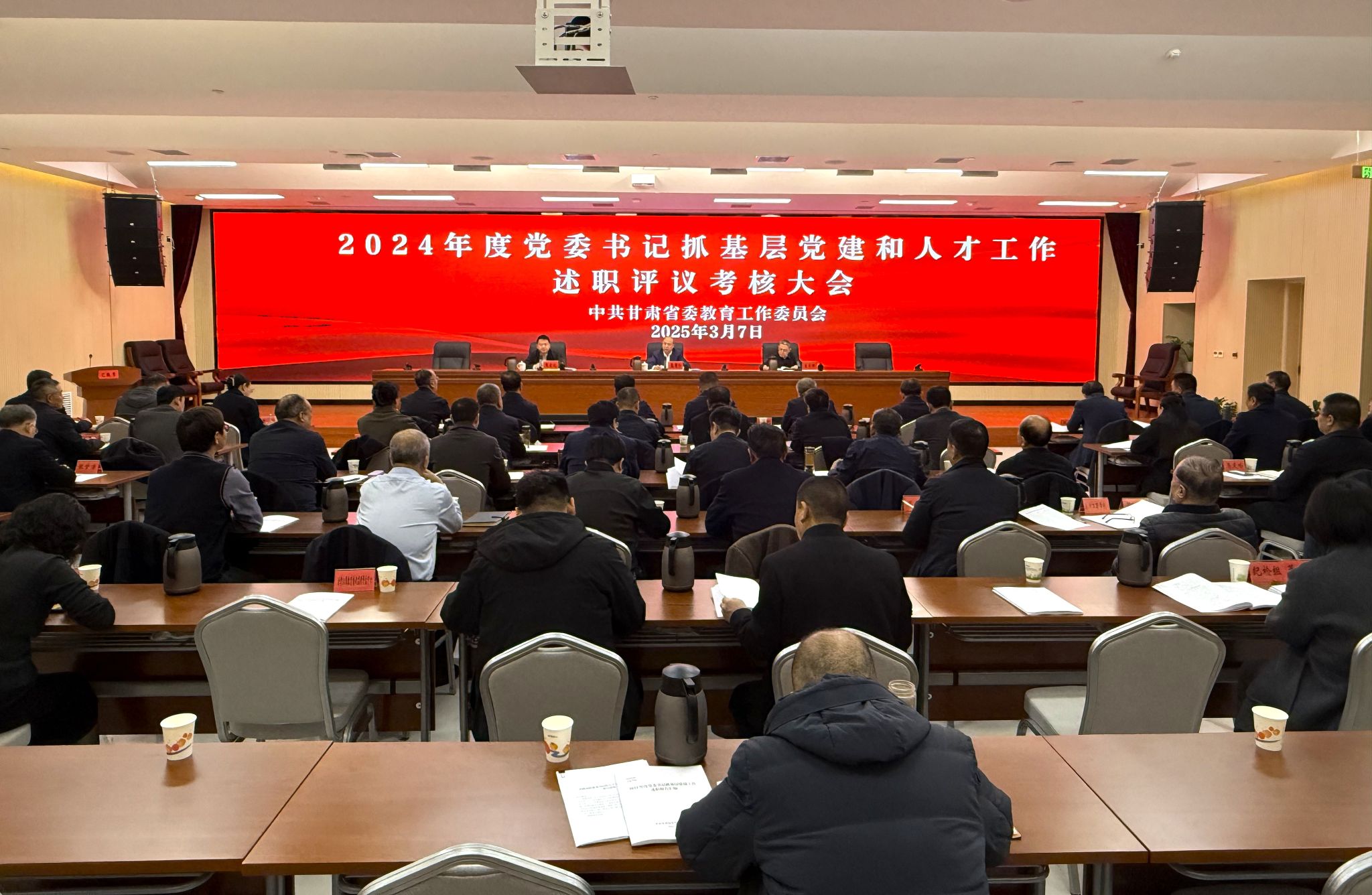 2025年3月7日上午,省委教育工委召开2024年度党委书记抓基层党建和人才工作述职评议考核大会。省委教育工委书记,省教育厅党组书记、厅长张国珍点评并作总结讲话。会议由省教育厅党组成员、副厅长曾华辉主持;省委组织部干部三处负责同志到会指导。学校党委书记、理事长等相关人员参加会议。会上,2所省属高校进行了人才工作述职,2个工委所属党组织进行了抓基层党建工作述职。学校党委作为工委所属党组织进行了抓基层党建工作现场述职。