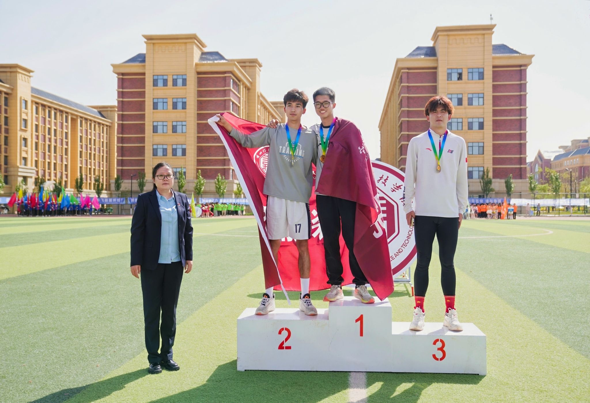 经过两天的激烈竞逐,运动会圆满落下帷幕。计算机与人工智能学院学生代表队、土木工程学院学生代表队、智能装备学院学生代表队分别荣获学生组团体前三名。商学院教师代表队、机关第四代表队、土木工程学院教师代表队分别荣获教工组团体前三名。李徽等50名同学获评“优秀运动员”,杨博等30名同学获评“优秀裁判员”,赵文彤等130名同学获评“优秀工作者”,卫博天等94名同学获评“优秀志愿者”。