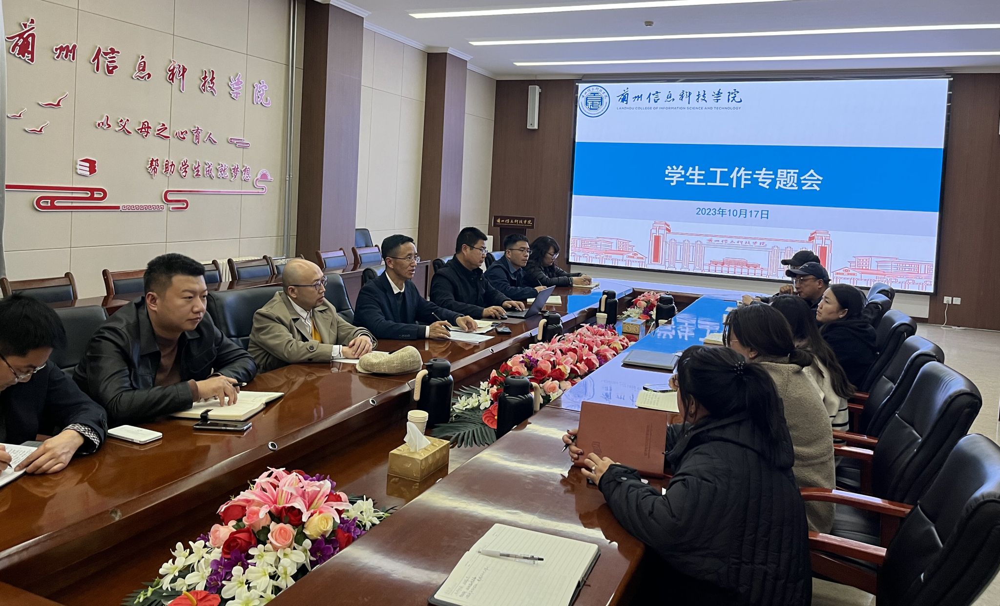 近日,BEAT365英国官网召开学生专题会议,校长助理朱明敏,各学院学生发展中心主任、副主任,学生处全体人员参加了会议。