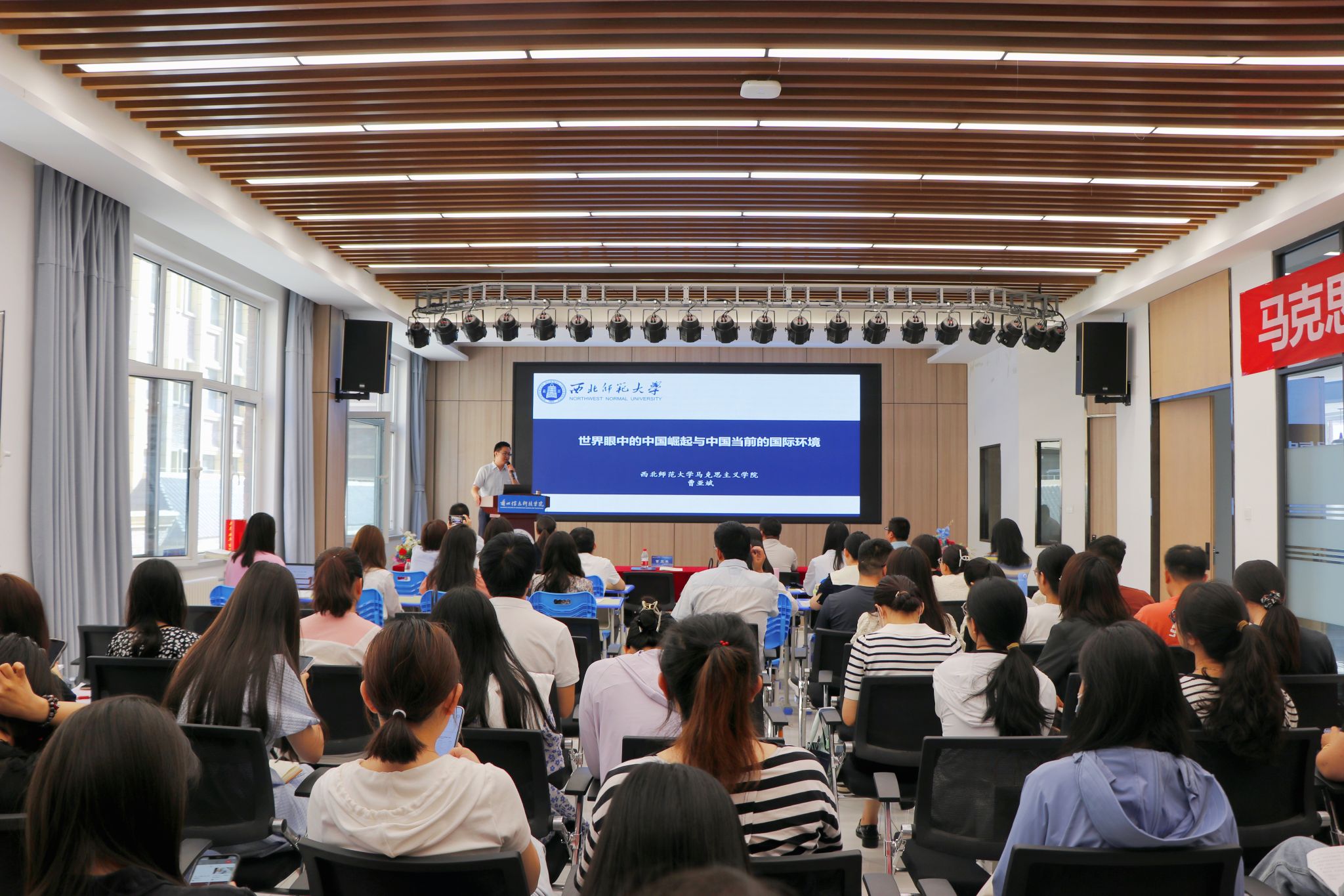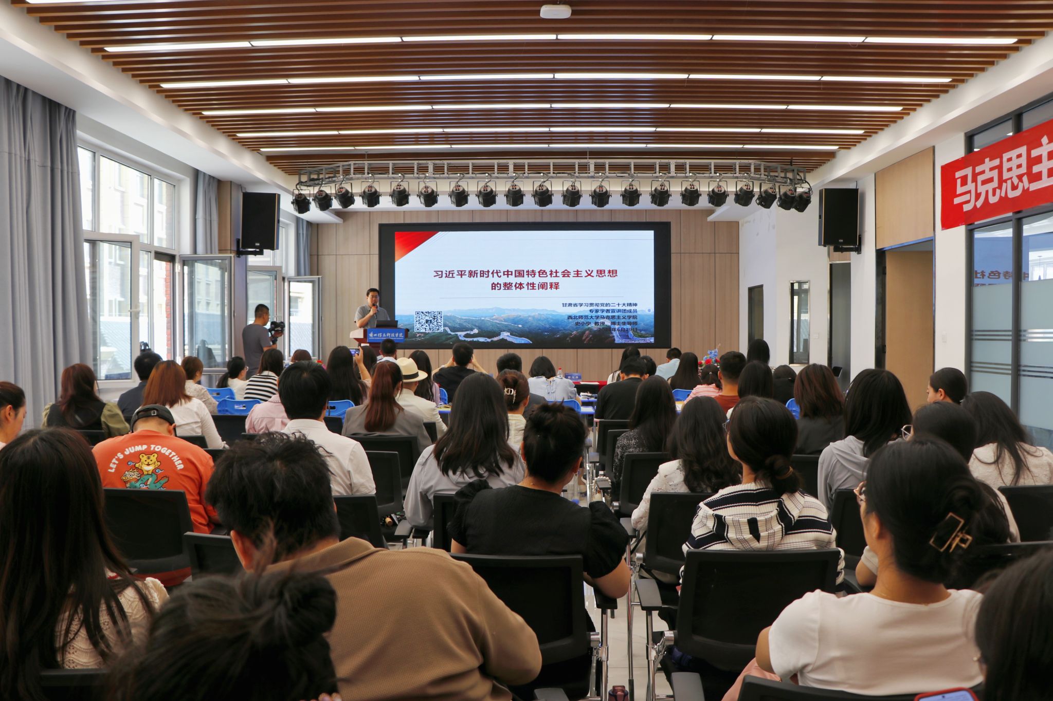 6月30日,学校分别邀请了西北师范大学云亭青年教授、马克思主义学院博士生导师曹亚斌教授和西北师范大学马克思主义学院马克思主义基本原理研究所所长、硕士生导师马乔恩副教授分别开展学术报告和名师示范课。