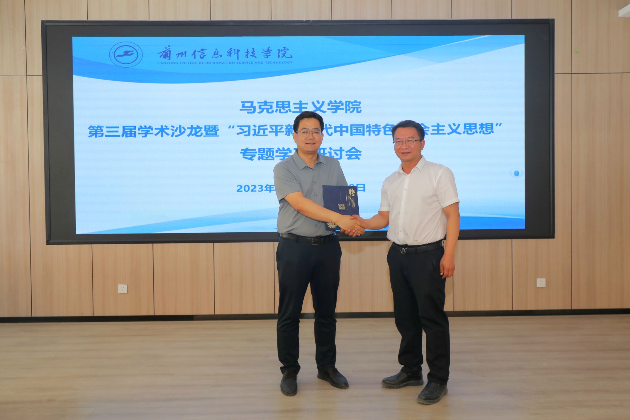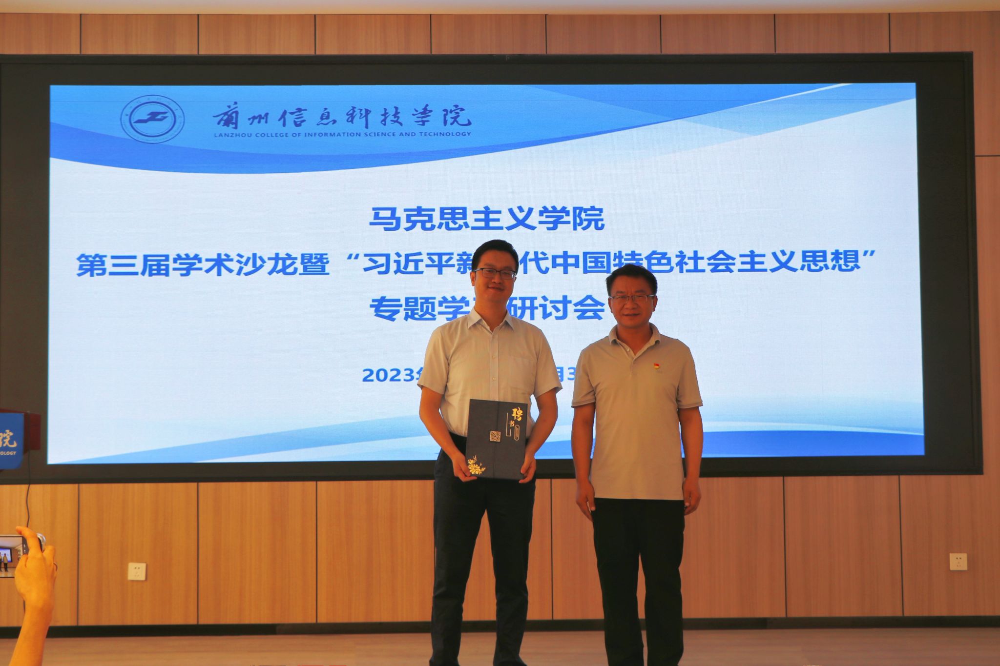 为了能够持续深入推进思想政治理论教学质量提升、思政课教师教学科研能力提升,在本届学术沙龙开展过程中,学校聘任史小宁教授、曹亚斌教授和马乔恩副教授为“客座教授”,学校党委副书记、副校长郭筱磊出席相关活动并为“客座教授”颁发聘书。