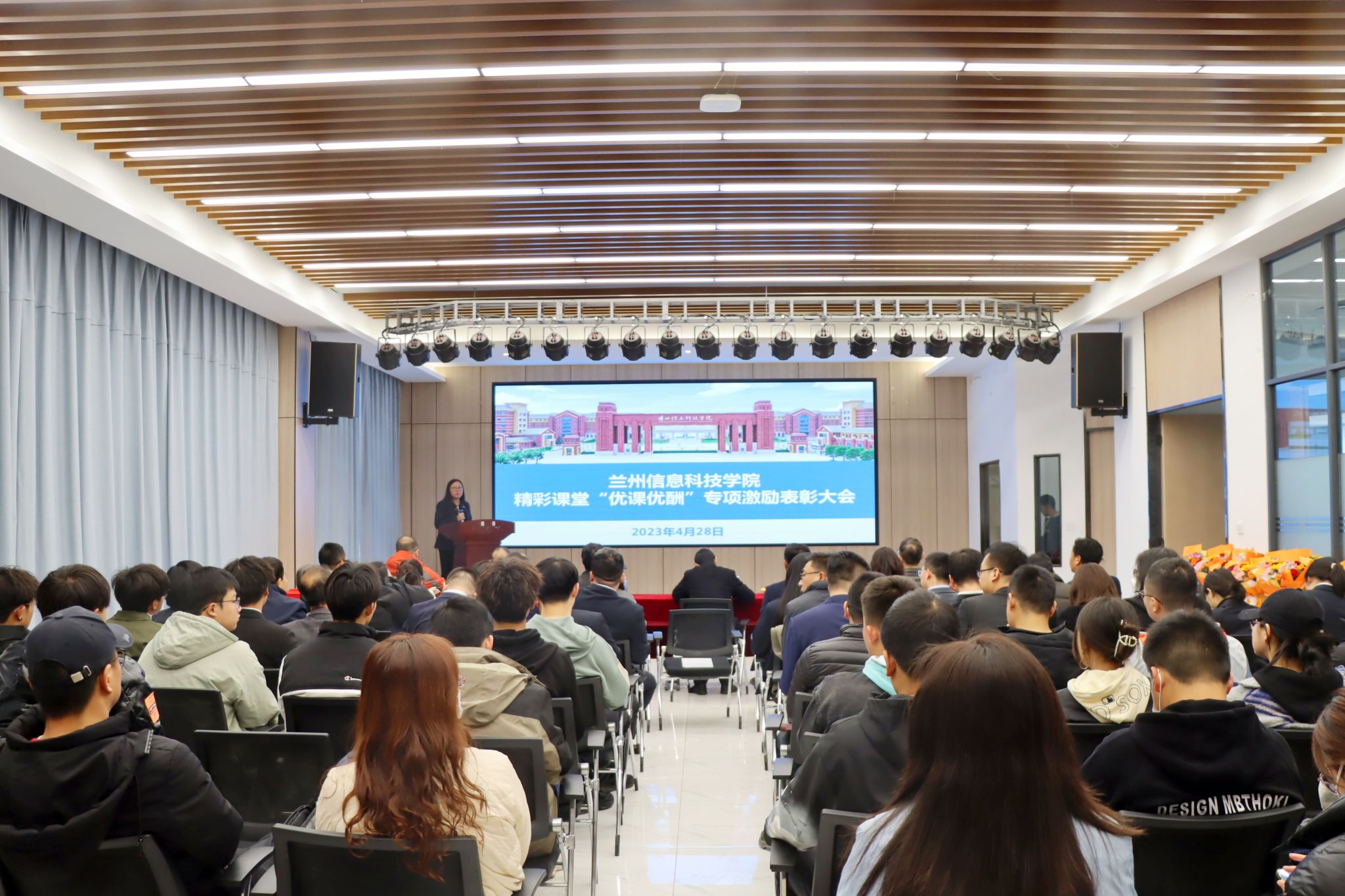 教学质量保障中心宣读了《关于表彰学校精彩课堂专项激励获奖教师的决定》,黄炜为此次获奖的22位教师颁发荣誉证书。第六届甘肃省“青教赛”获奖教师马克思主义学院院长张喆为与会师生做了示范课分享。