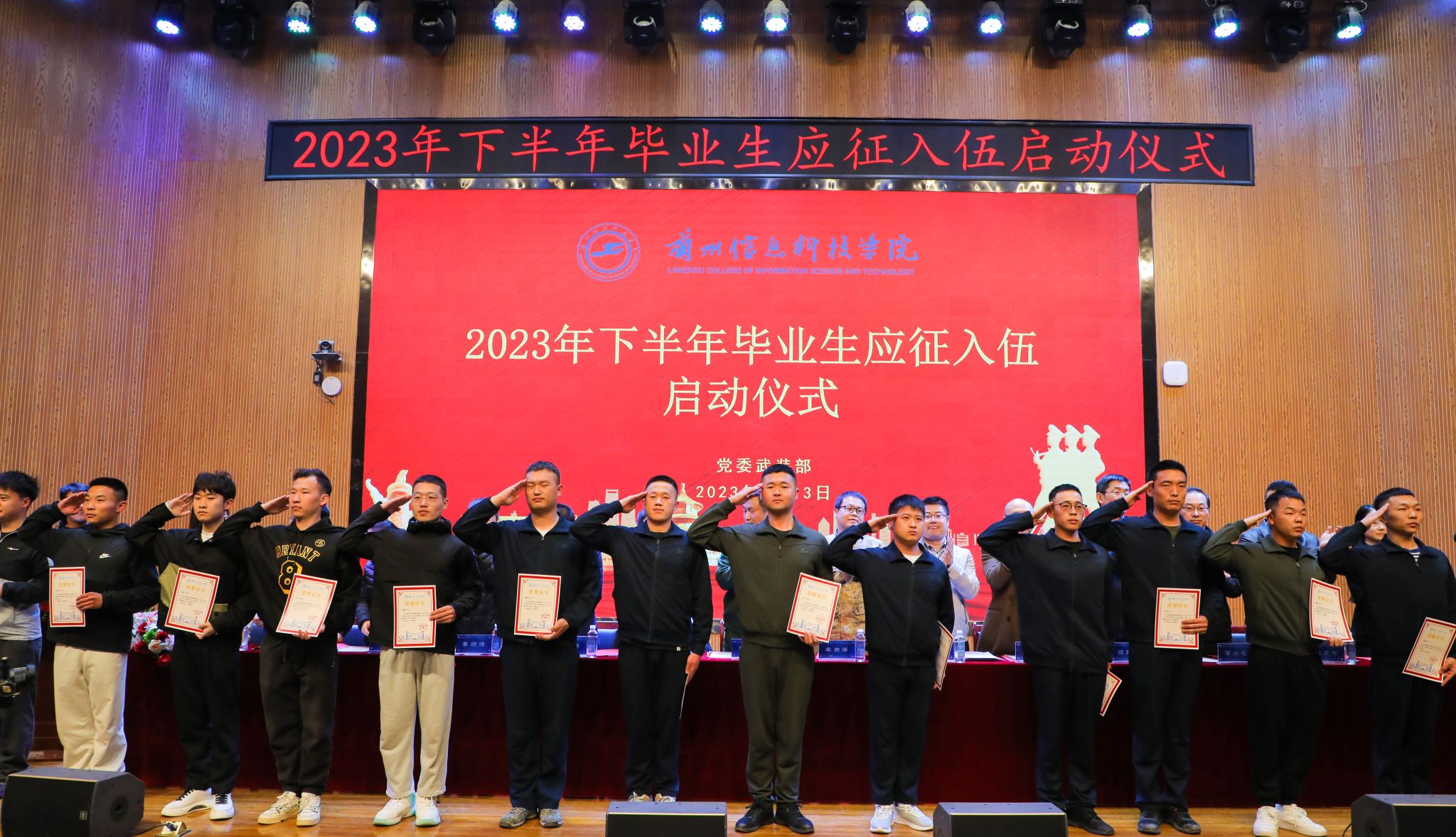 启动仪式上宣读了2023年上半年参军入伍学生名单、授予2023年上半年“参军报国优秀大学生”荣誉称号学生名单、2023年上半年应征入伍工作先进集体和个人名单,与会人员对获奖集体和个人进行了颁奖;同时宣读了《甘肃省激励大学生参军入伍的政策措施》《BEAT365英国官网鼓励大学生应征入伍实施办法》,退役复学学生代表-中国人民解放军中央警卫团原战士姚学弟同学和2023年下半年意向应征入伍学生代表相继发言。