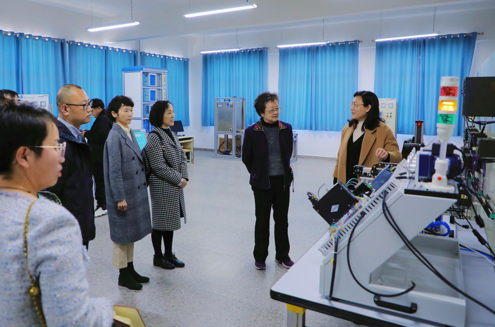 座谈会后,任晖校长一行参观了学校的平安校园指挥中心、工程训练中心、工业自动化实验室、学生公寓等。
