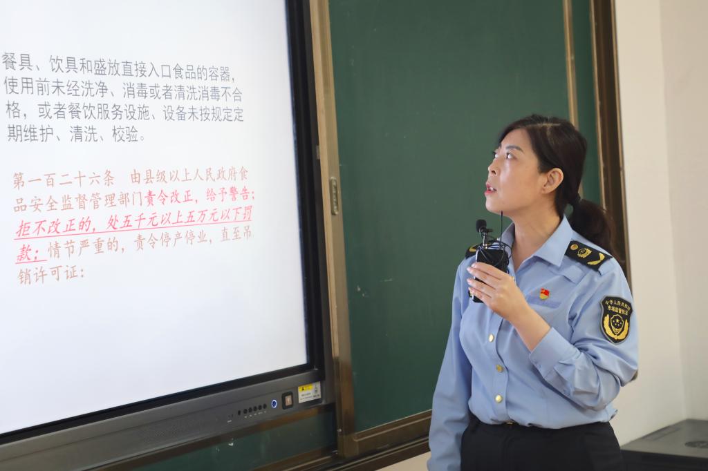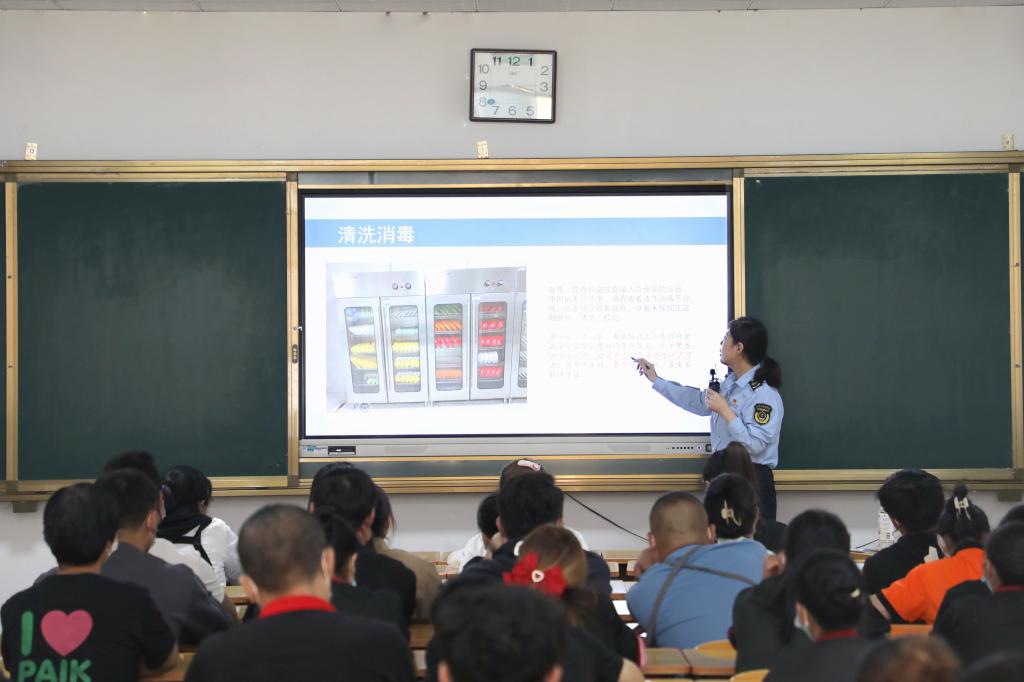 讲座过程中,朱燕红结合食品安全法对《餐饮服务食品安全操作规范》重点条款进行了深入解读,并结合实际案例,讲解了校园餐饮服务中,预防食物中毒的注意事项。
