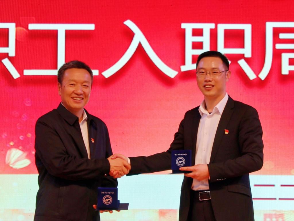 全体校领导为处级管理干部授予荣誉徽章并赠送纪念卡片