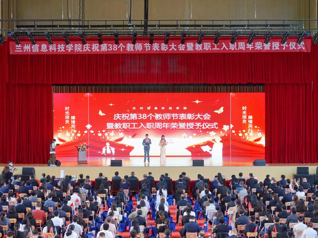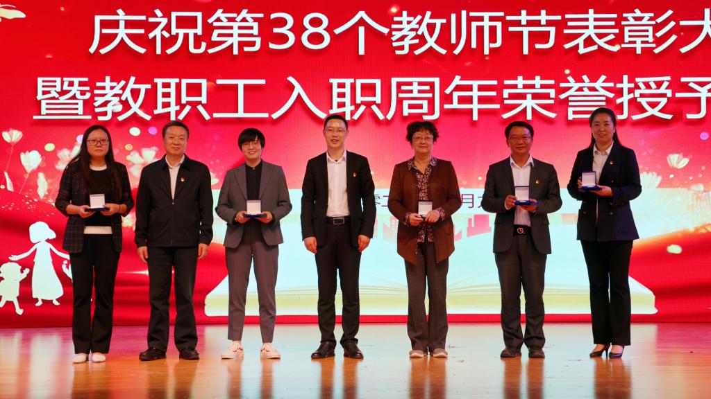 9月9日,在第38个教师节即将到来之际,学校在体育馆举行庆祝第38个教师节表彰大会暨教职工入职周年荣誉授予仪式,全体校领导、全体教职工参加大会。