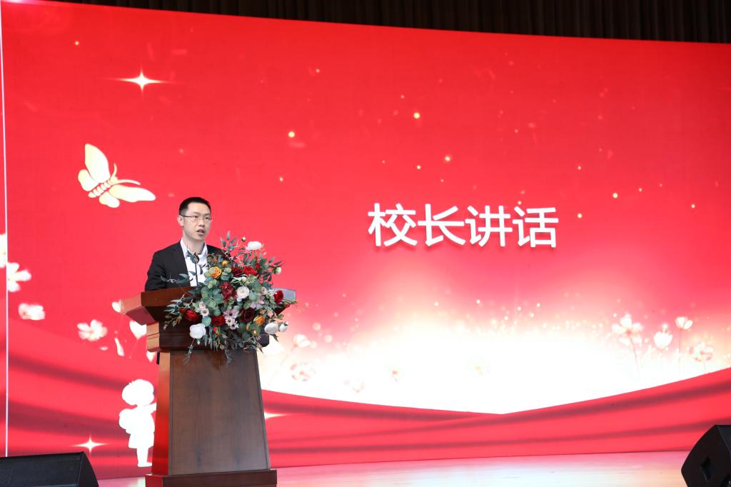 校长黄炜发表讲话,他向受到表彰的先进集体和先进个人表示热烈祝贺,向辛勤付出的教职工表示由衷的感谢,向每位老师致以节日的祝福和诚挚的问候。