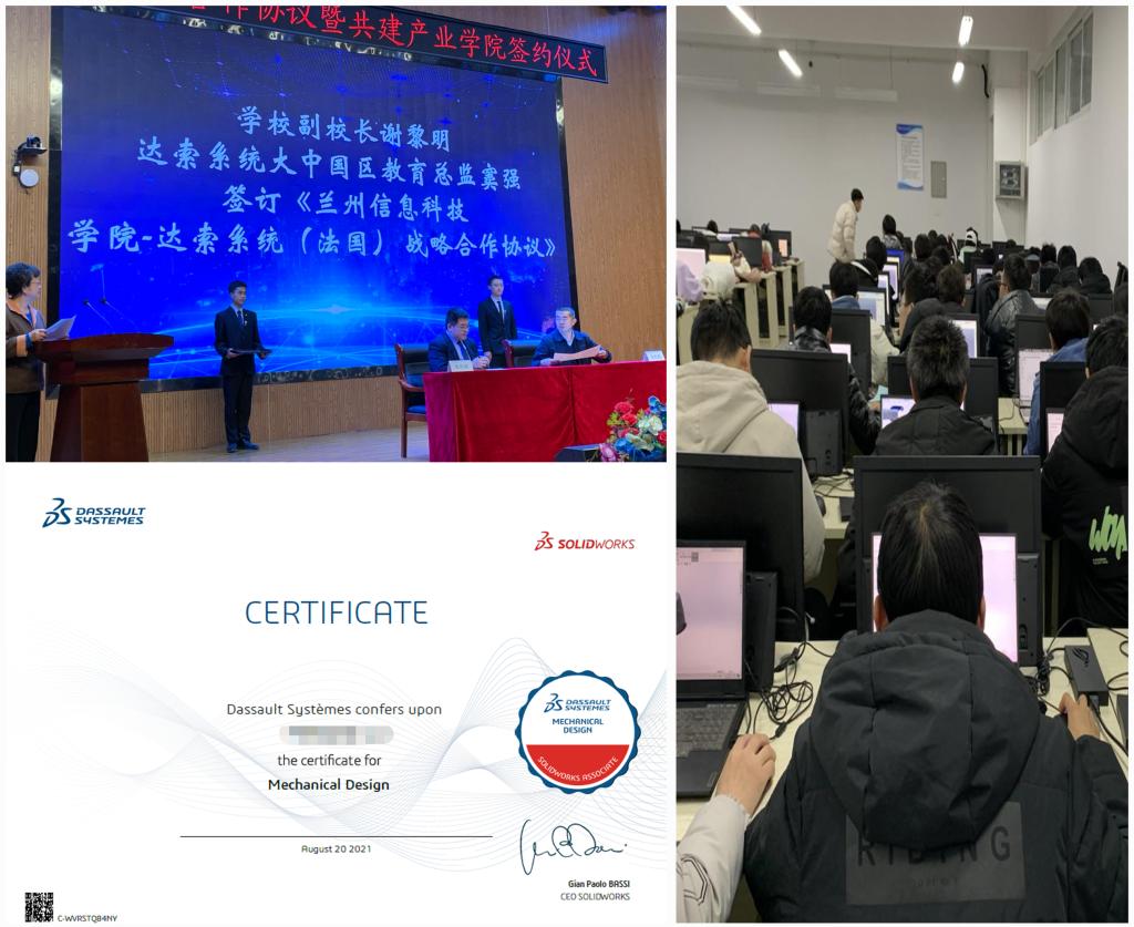 学校秉承智能制造技术产教融合的新教学理念,已连续为三届近千名学生开展CSWA、350余名学生开展见习机械工程师的考培工作和学分置换,实践与证培相结合,实现了学生产学研为一体的高质量就业;在创新研发实践中,科研与产业相结合,实现了更多“明星就业”学生。