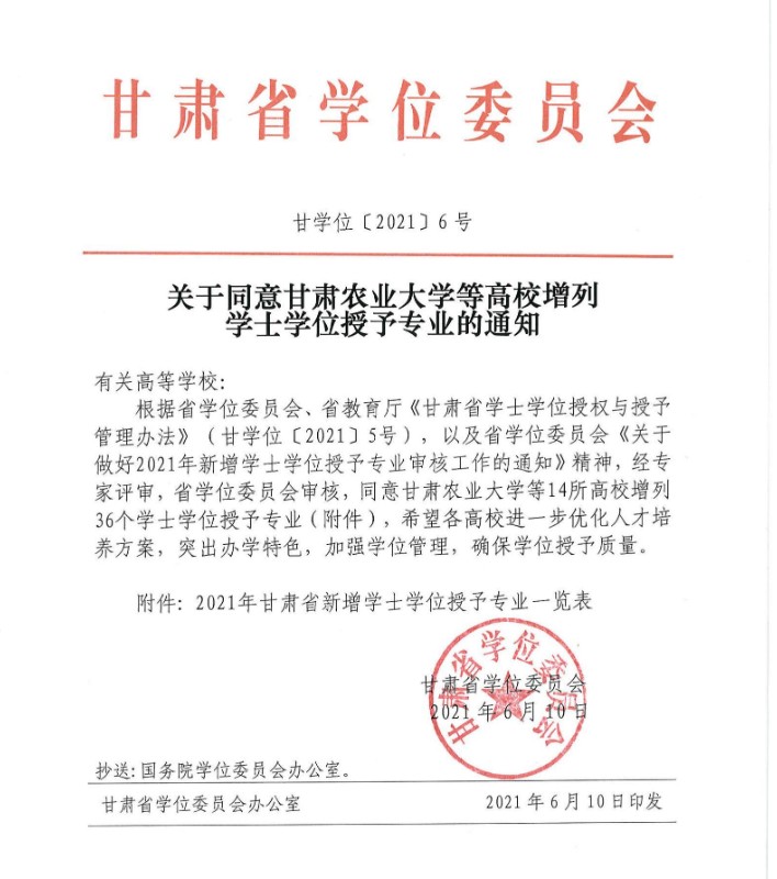 近日,甘肃省学位委员会印发《甘学位〔2021〕6号文件》,公布2021年新增学士学位授予专业审核结果,BEAT365英国官网3个本科专业通过甘肃省学位委员会组织的专家评审。其中,机械电子工程专业(专业代码080204)、通信工程专业(专业代码080703)获得工学学士学位授予权,电子商务(专业代码120801)专业获得管理学学士学位授予权。