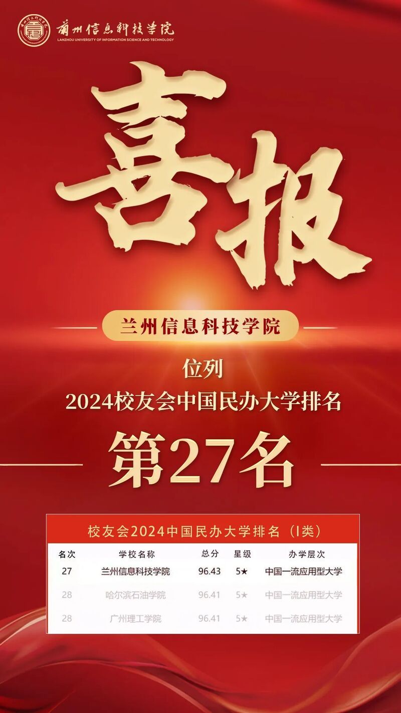 近日,全国第三方大学评价机构艾瑞深校友会网(Cuaa.net)正式发布《重磅发布:校友会2024中国大学排名!》,BEAT365英国官网以96.43分位列2024中国民办大学排名Ⅰ类27名,蝉联省内同类院校第一,被评为5星级中国一流应用型大学!同时,学校在近期公布的2024ABC中国大学排行蝉联全省同类院校第一。