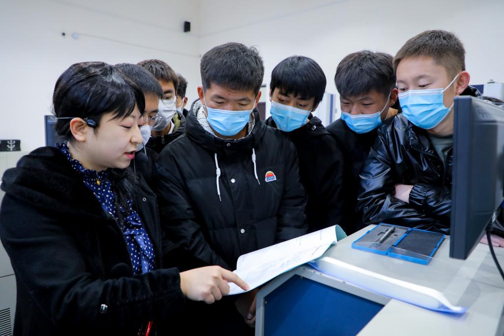 该校工科专业学生正在工程训练中心操作机器。张猛摄
