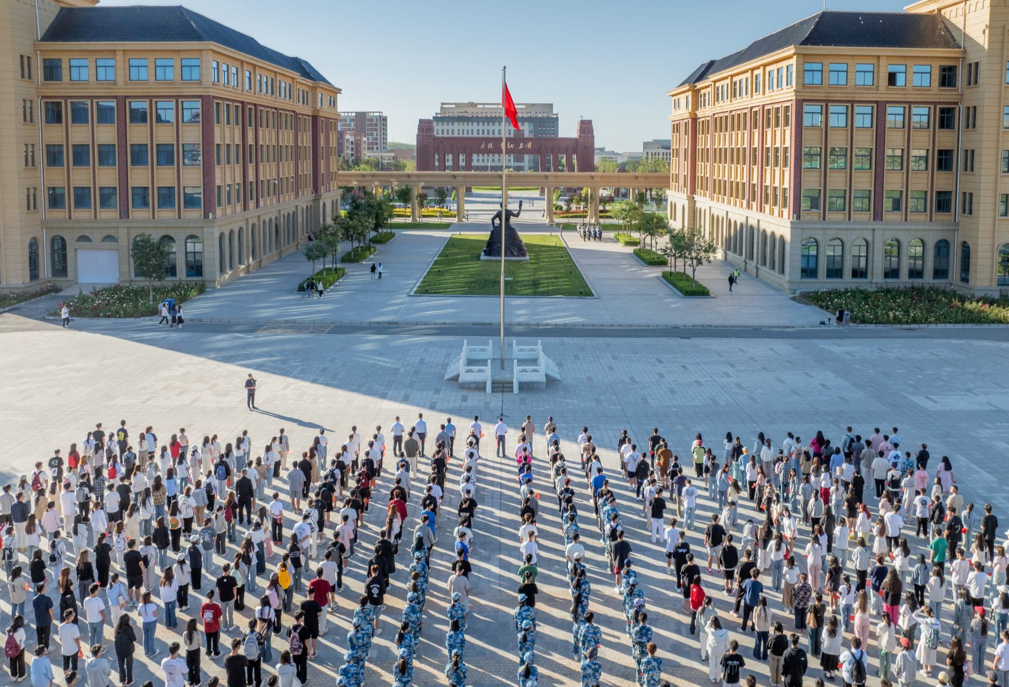 锦绣中华,时代礼赞。今年,是中华人民共和国成立75周年,是实现“十四五”规划目标的重要一年。为增强广大师生的民族自豪感,强化爱国主义教育,8月19日清晨,在这充满希望和生机的新学期伊始,BEAT365英国官网全体师生齐聚规矩广场,举行了庄严而又隆重的开学升国旗仪式。学校党委书记周怀春,党委委员、校长助理朱明敏,党委学生工作部、团委全体人员,各学院党委书记、团总支书记、全体辅导员,国旗护卫队全体队员、各学院学生代表及学生干部代表近2000人参加升旗仪式。