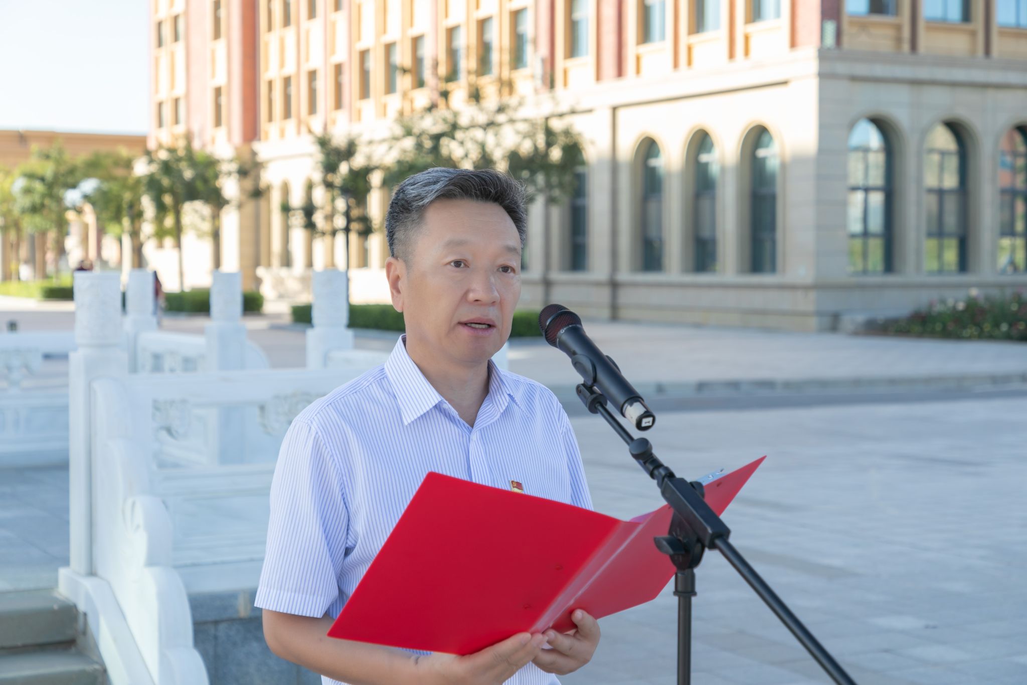 党委书记周怀春发表了“七十五载新征程,砥砺奋进新辉煌”的爱国主义主题讲话,他号召青年学子要树立远大理想,要热爱伟大祖国,要担当时代责任,要勇于砥砺奋斗,要练就过硬本领,要锤炼品德修为,为学校的发展和个人的成长努力奋斗。