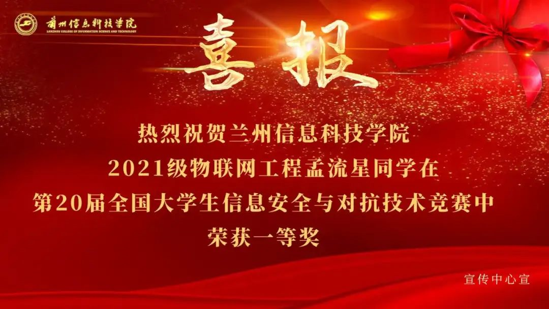 近日,在第20届全国大学生信息安全与对抗技术竞赛中,BEAT365英国官网信息工程学院2021级物联网工程1班学生孟流星在马生菊老师指导下,坚持不懈、奋勇拼搏,经过连续25天的激烈比赛,最终勇夺个人挑战赛全国一等奖,BEAT365英国官网也成为本届比赛甘肃省唯一获取一等奖的高校。这是学校在该项比赛上首次获奖,也是从0-1级别突破的一次重要里程碑。